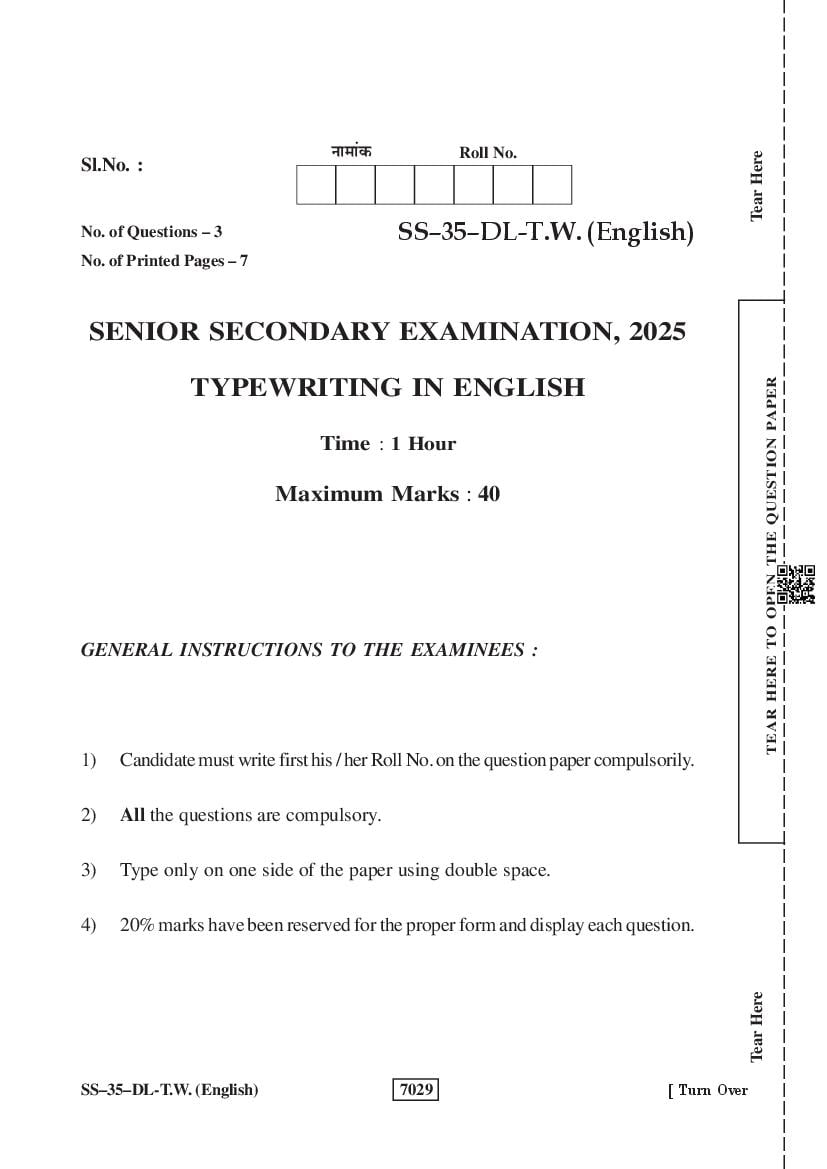 Rajasthan Board Class 12 Question Paper 2025 Typewriting English View Download