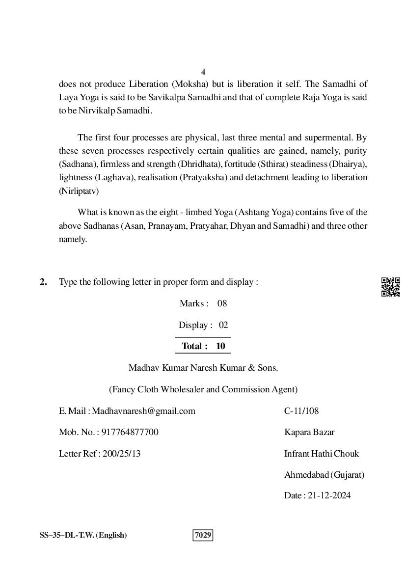 The Rajasthan Board previous year question paper for class 12 Typewriting English is as follows.