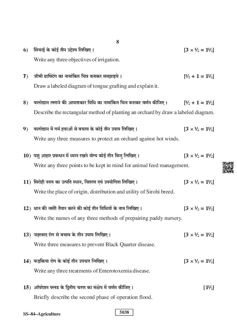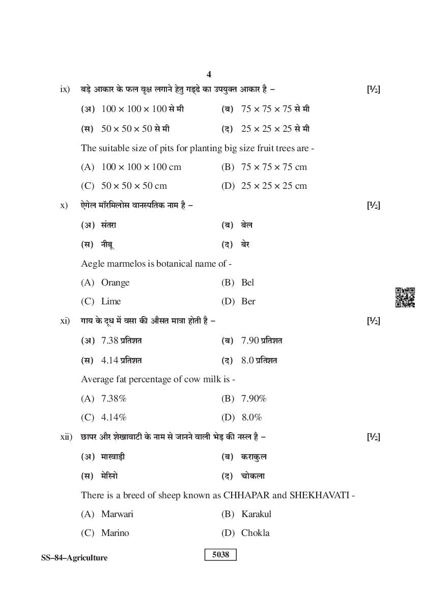 The Rajasthan Board previous year question paper for class 12 Agriculture is as follows.