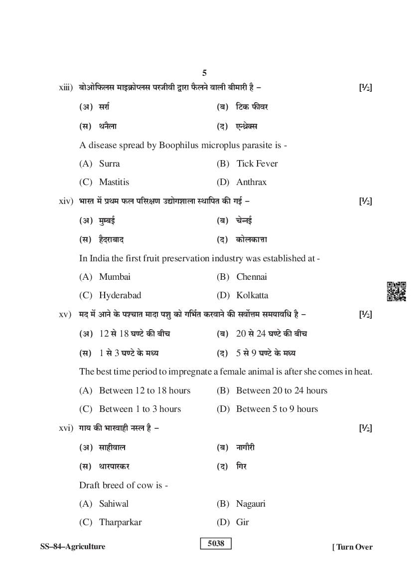 Rajasthan Board Class 12 Question Paper 2024 Agriculture View Download
