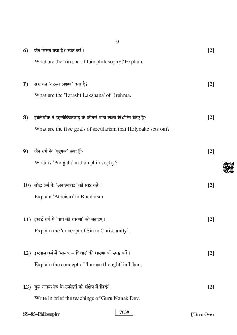 The Rajasthan Board previous year question paper for class 12 Philosophy is as follows.