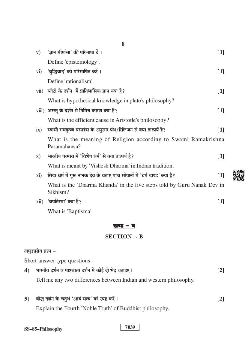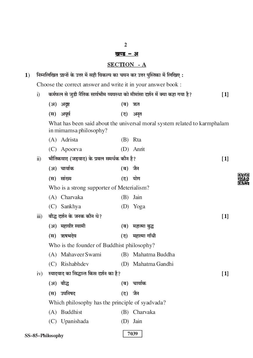 For the sake of the candidates download links of the Rajasthan Board 12 Philosophy Previous Year Question Paper are given below.
