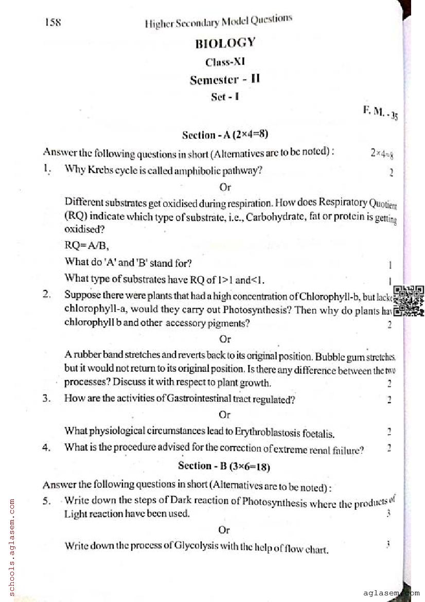 WB Class 11 Semester 2 Model Paper Biology View Download