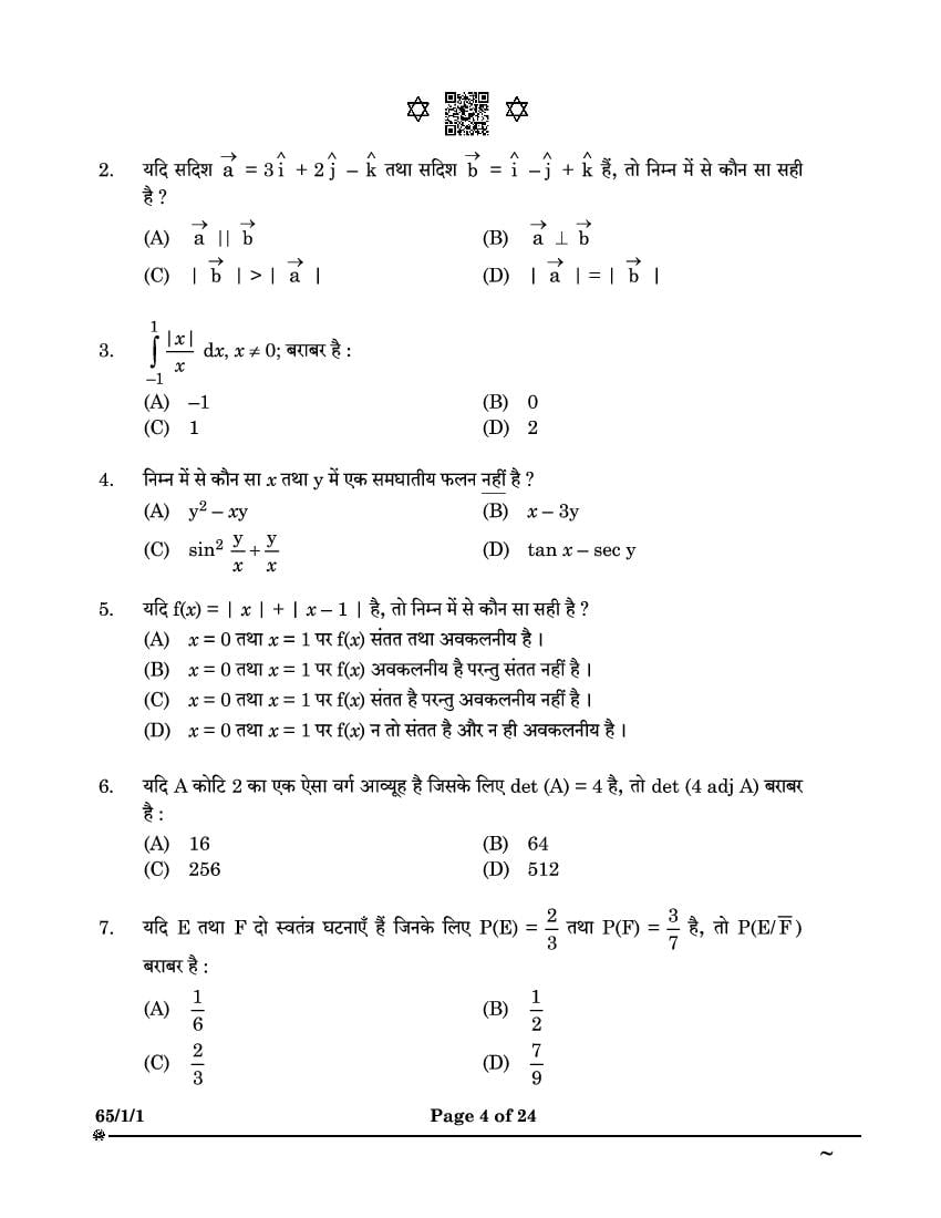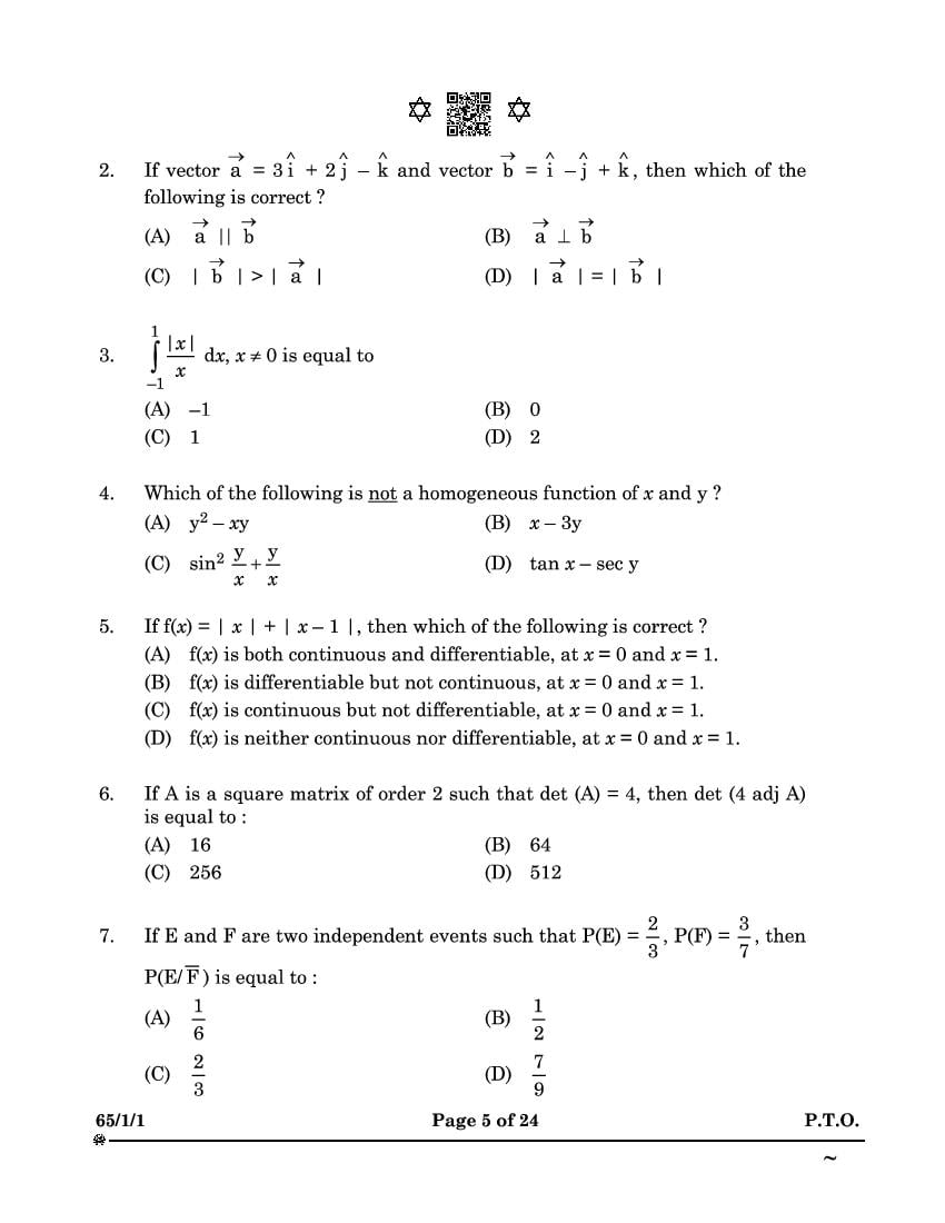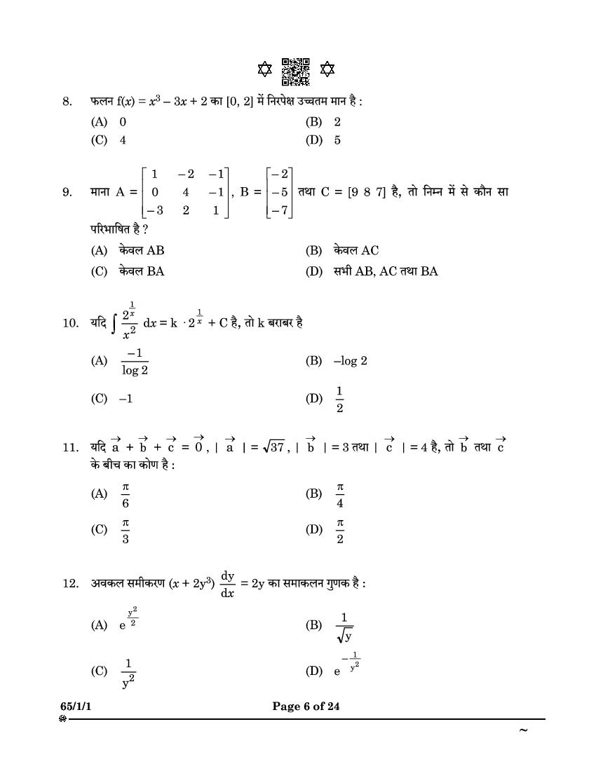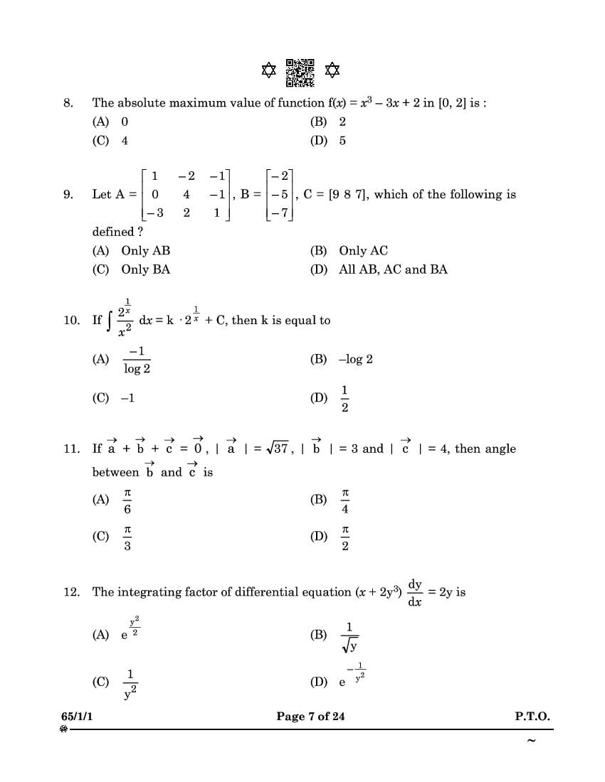 CBSE Class 12 Question Paper 2025 Maths View Download