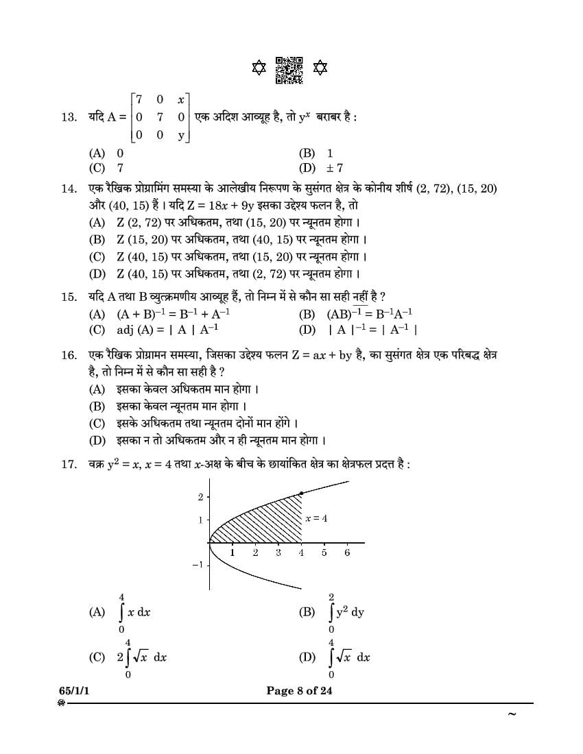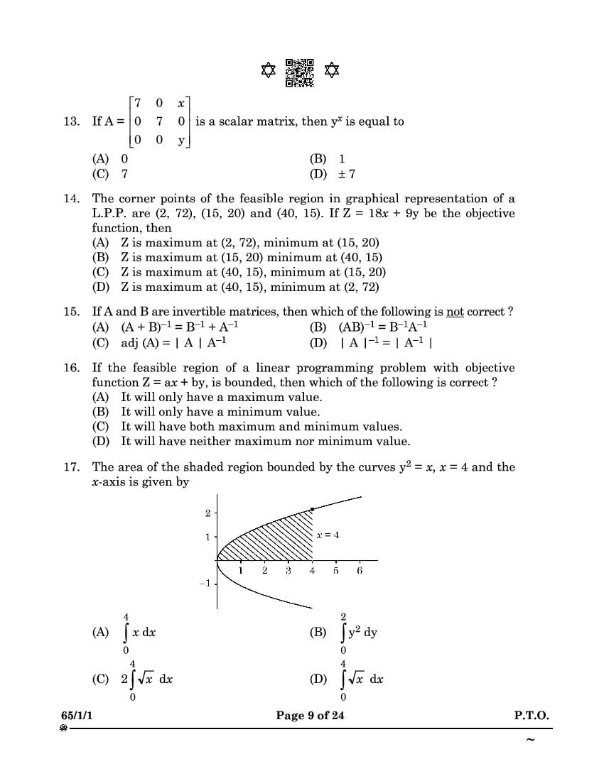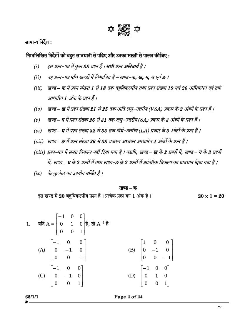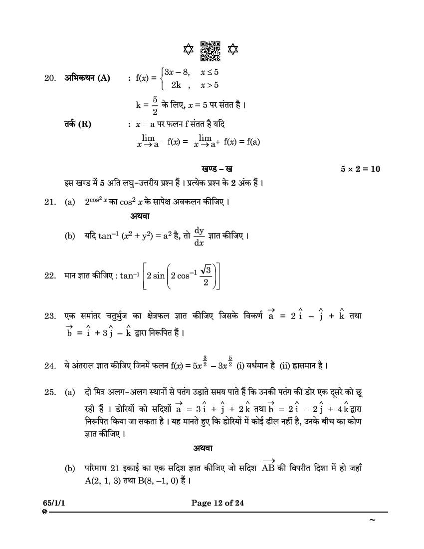 CBSE Class 12 Question Paper 2025 Maths View Download