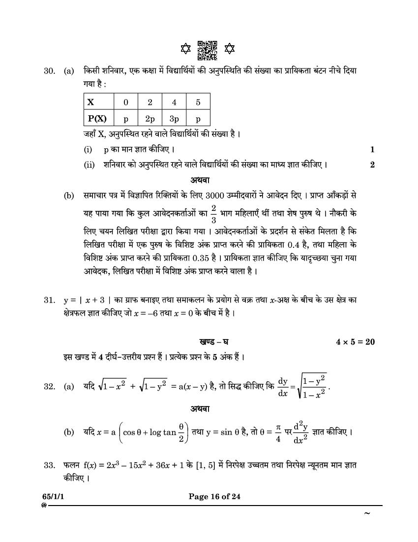 CBSE Class 12 Question Paper
