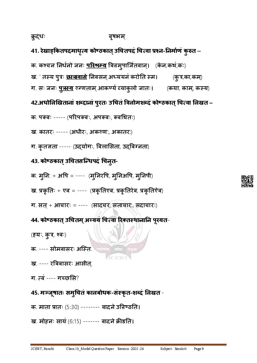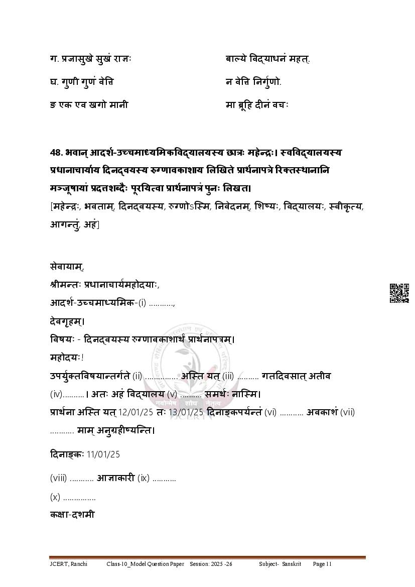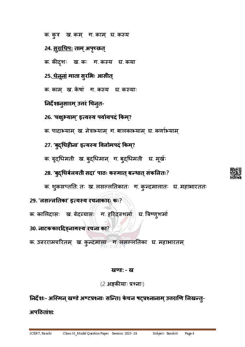 JAC 10th Sanskrit Model Question Paper 2026 PDF