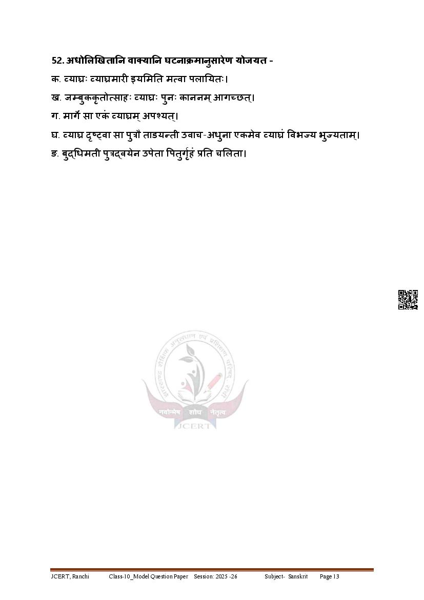 The JAC Board Model Paper for class 10 Sanskrit is as follows.