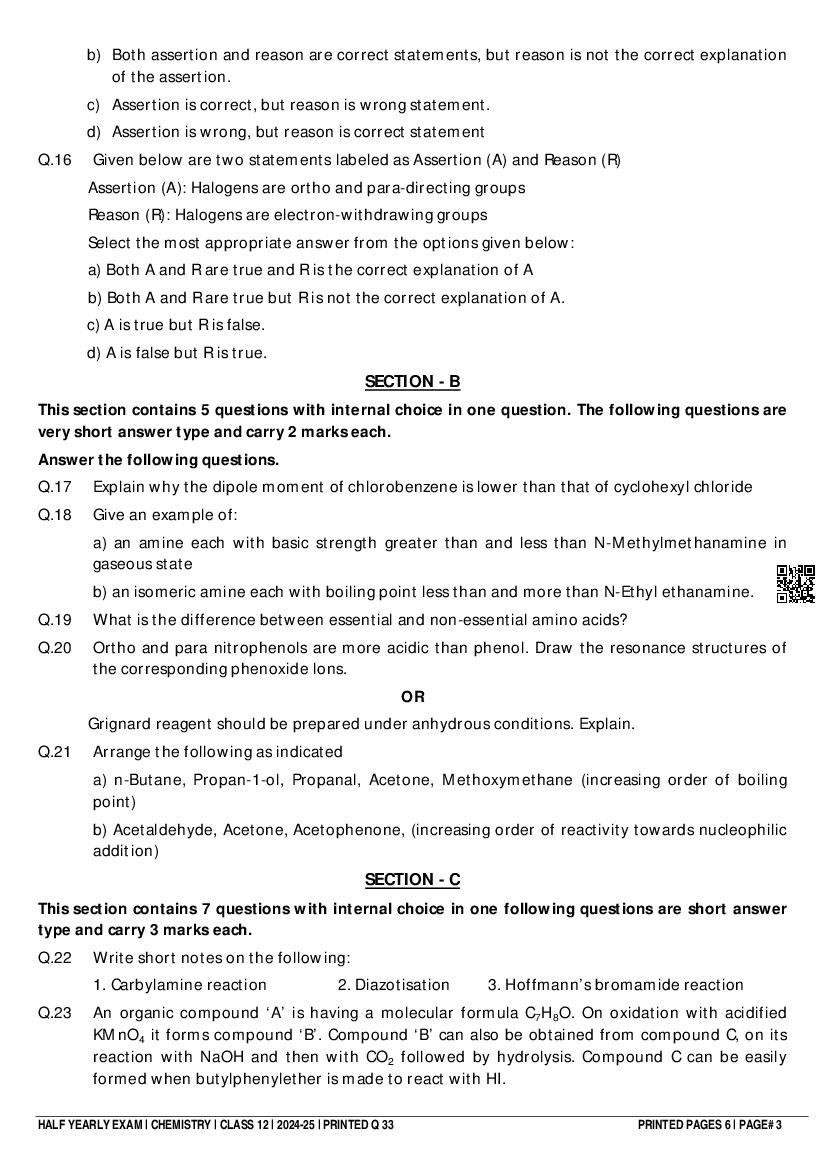 If you have any queries about Class 12 Chemistry Half Yearly Question Paper 2025, then please ask in comments below. And if you found this study material helpful, then please share with your friends!