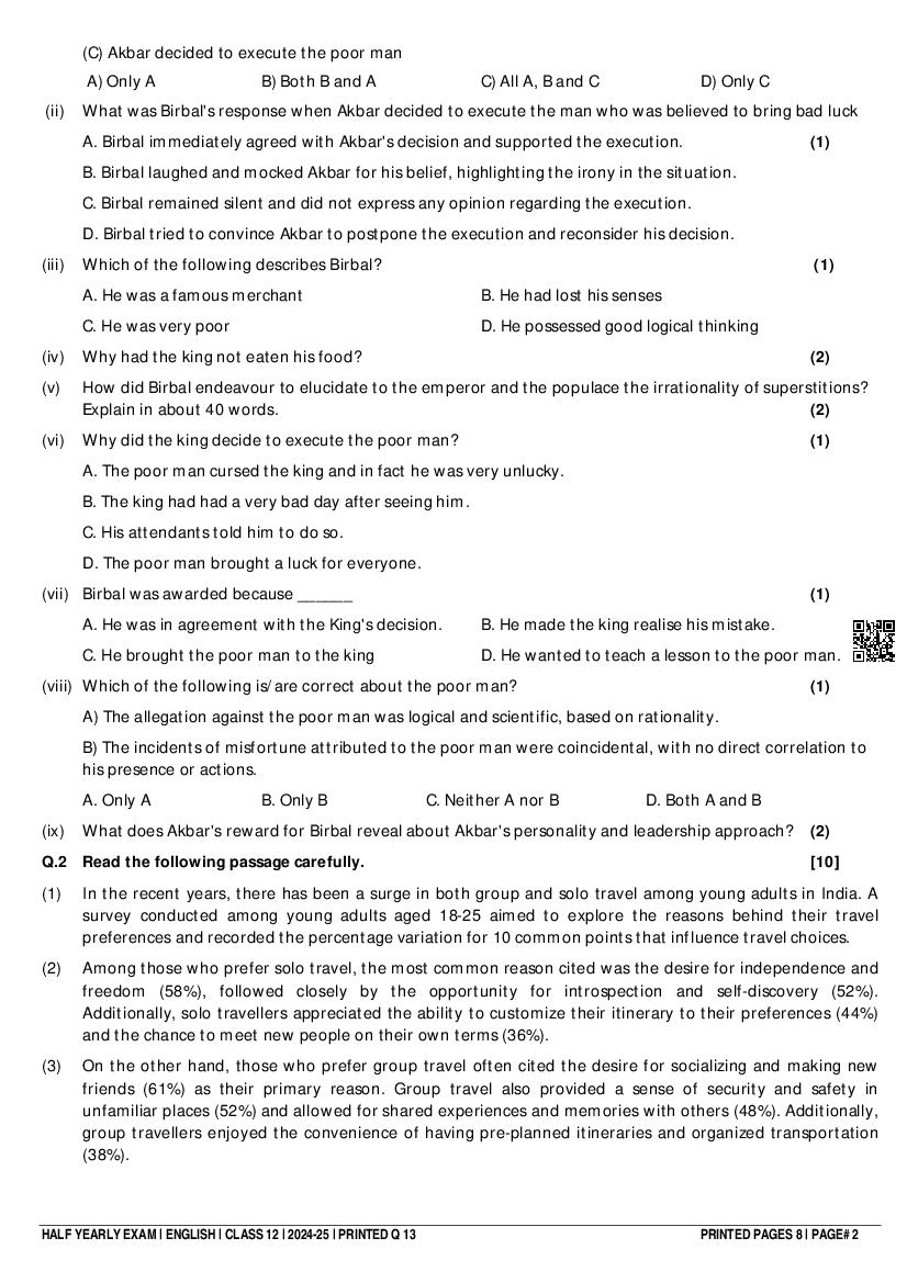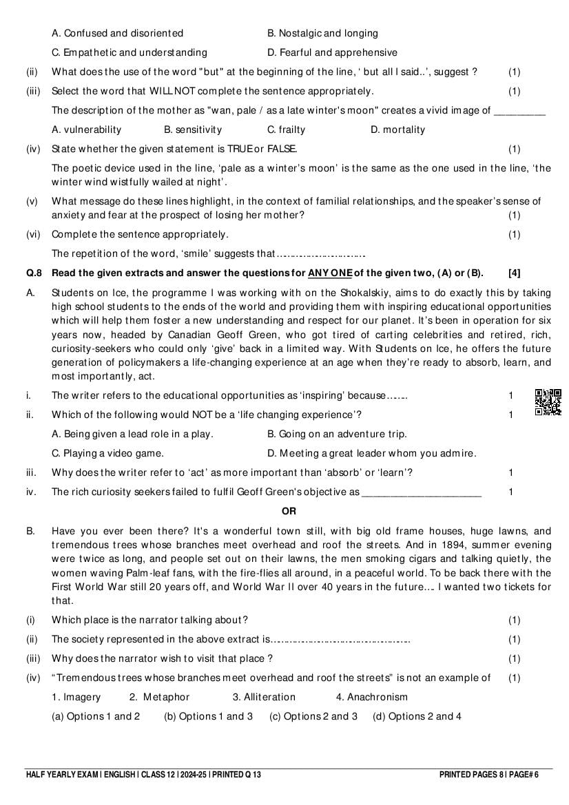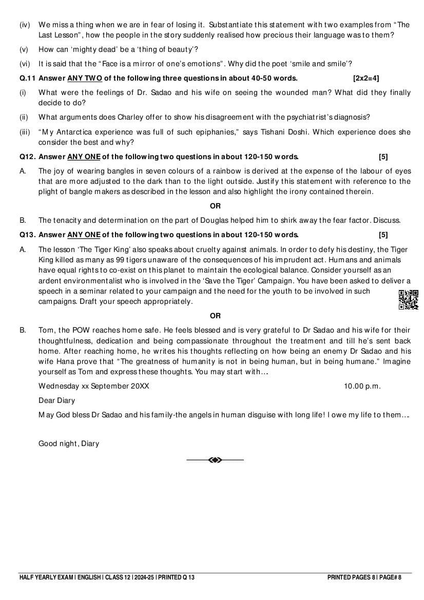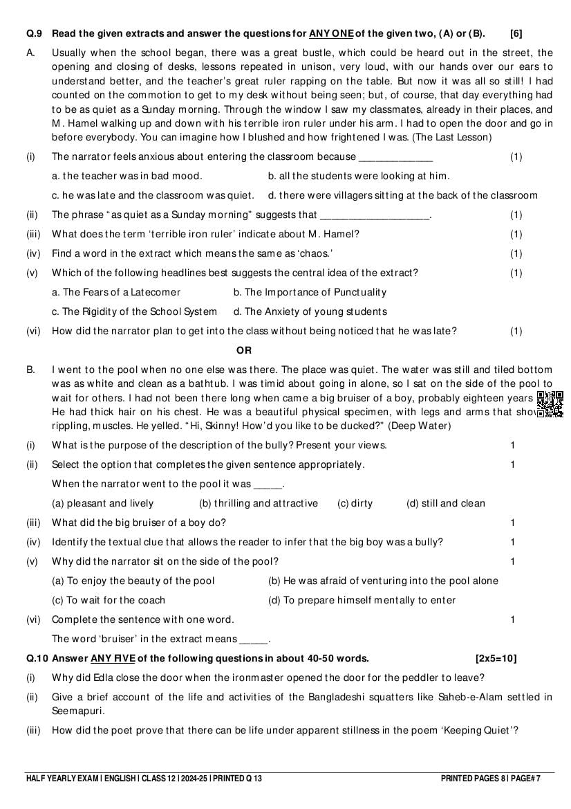 Class 12 Question Paper 2024-25 English (Half Yearly) View Download