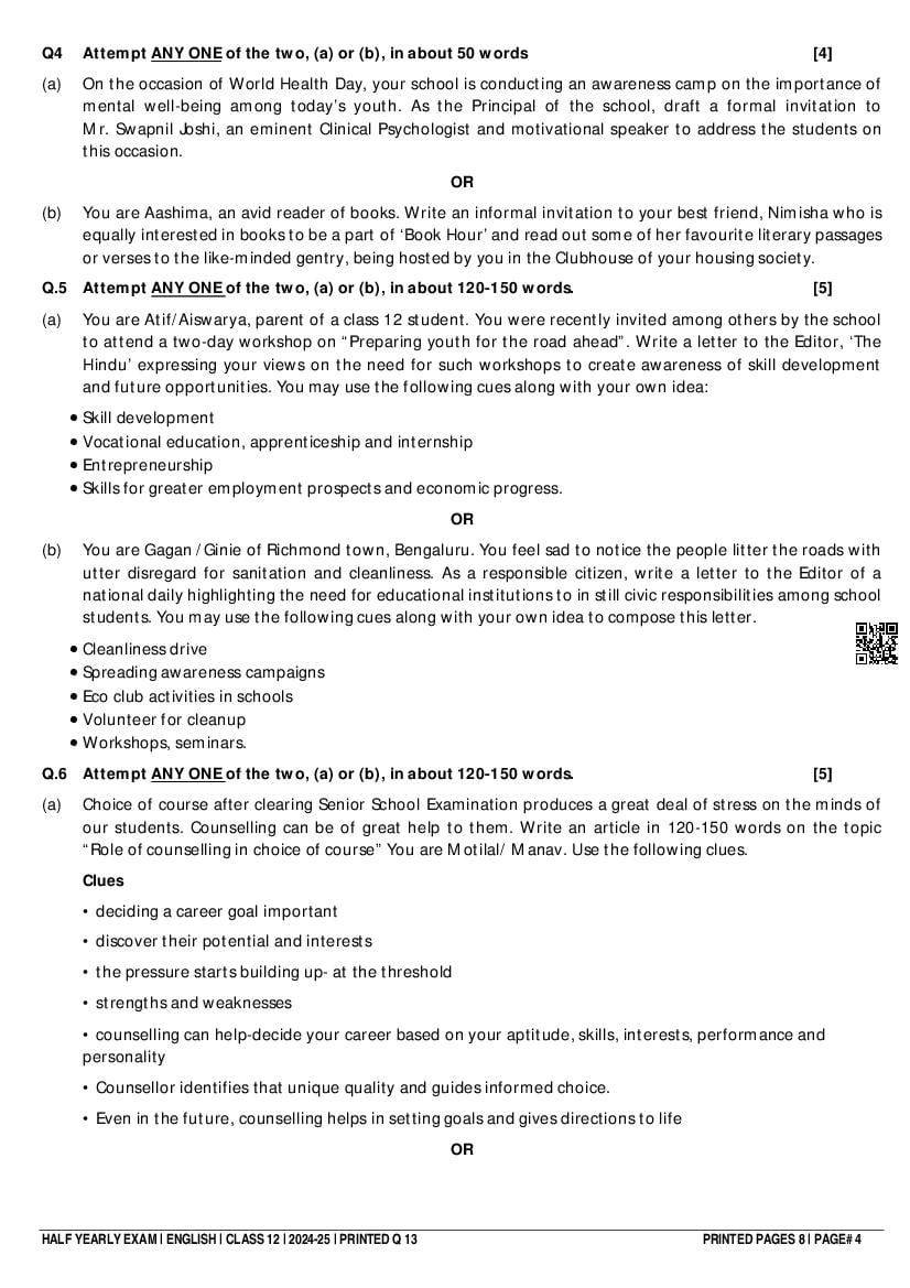 If you have any queries about Class 12 English Half Yearly Question Paper 2025, then please ask in comments below. And if you found this study material helpful, then please share with your friends!