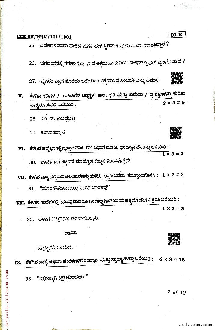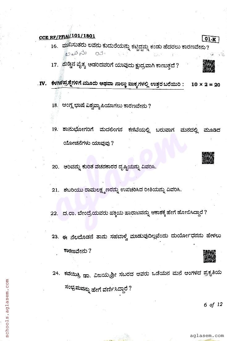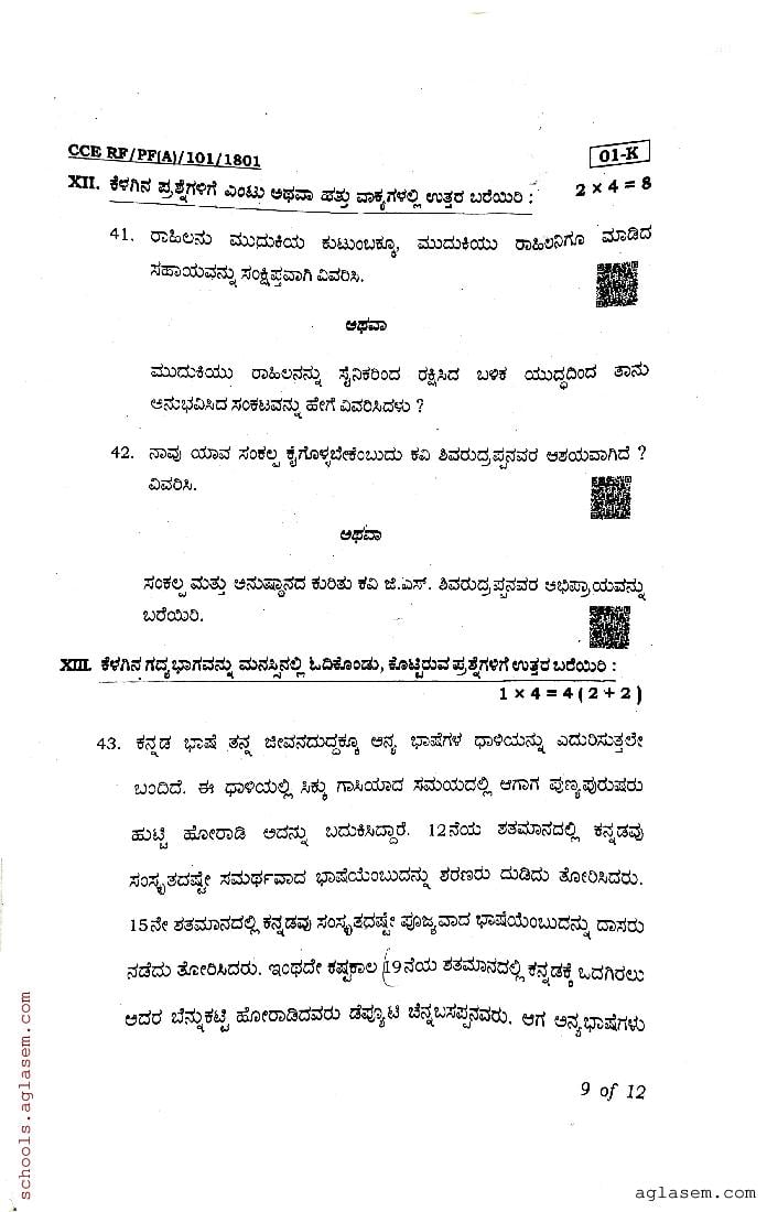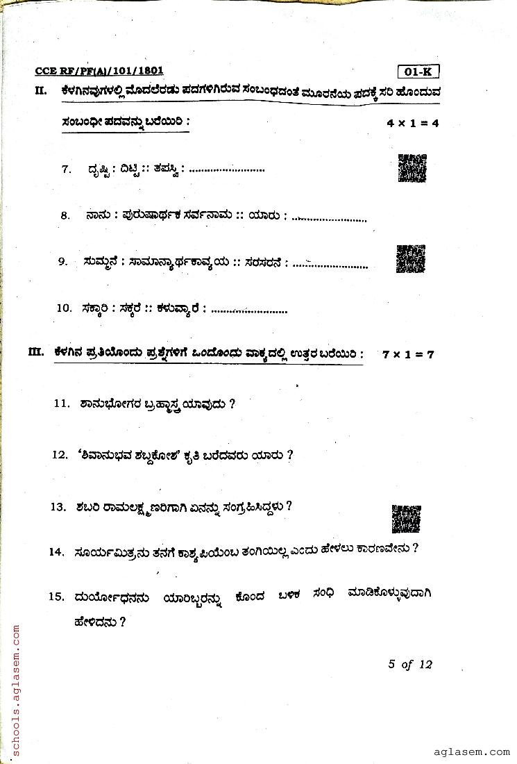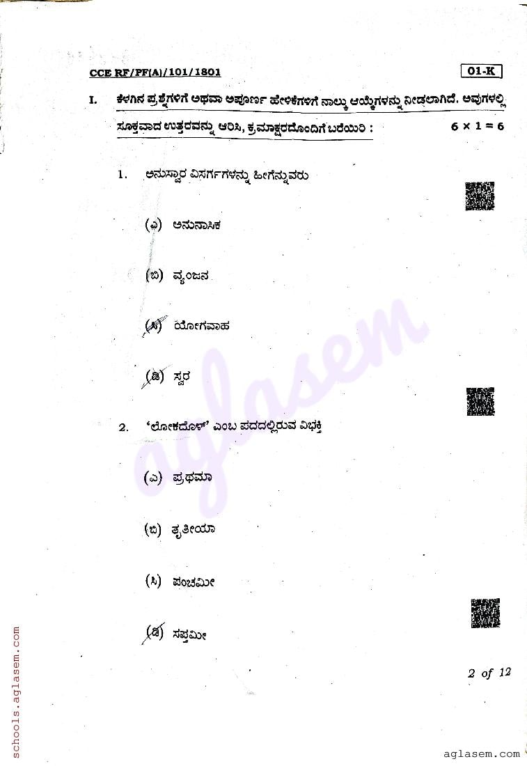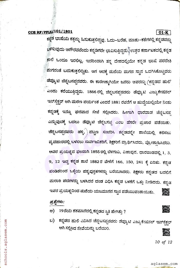 The latest released complete class 10 Kannada First Language question paper PDF is as given below.