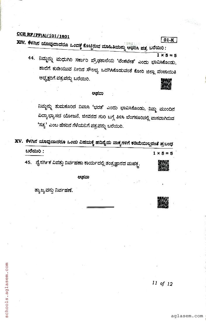 Besides class 10 Kannada First Language paper, you can download the past year papers for all classes, all subjects of Karnataka Board from aglasem.com.
