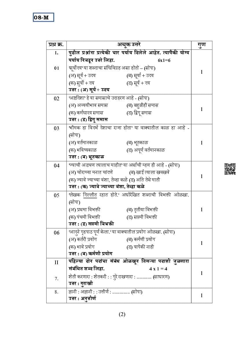 Karnataka SSLC Marathi Model Question Paper 2024 Download Link – Click Here to Download PDF