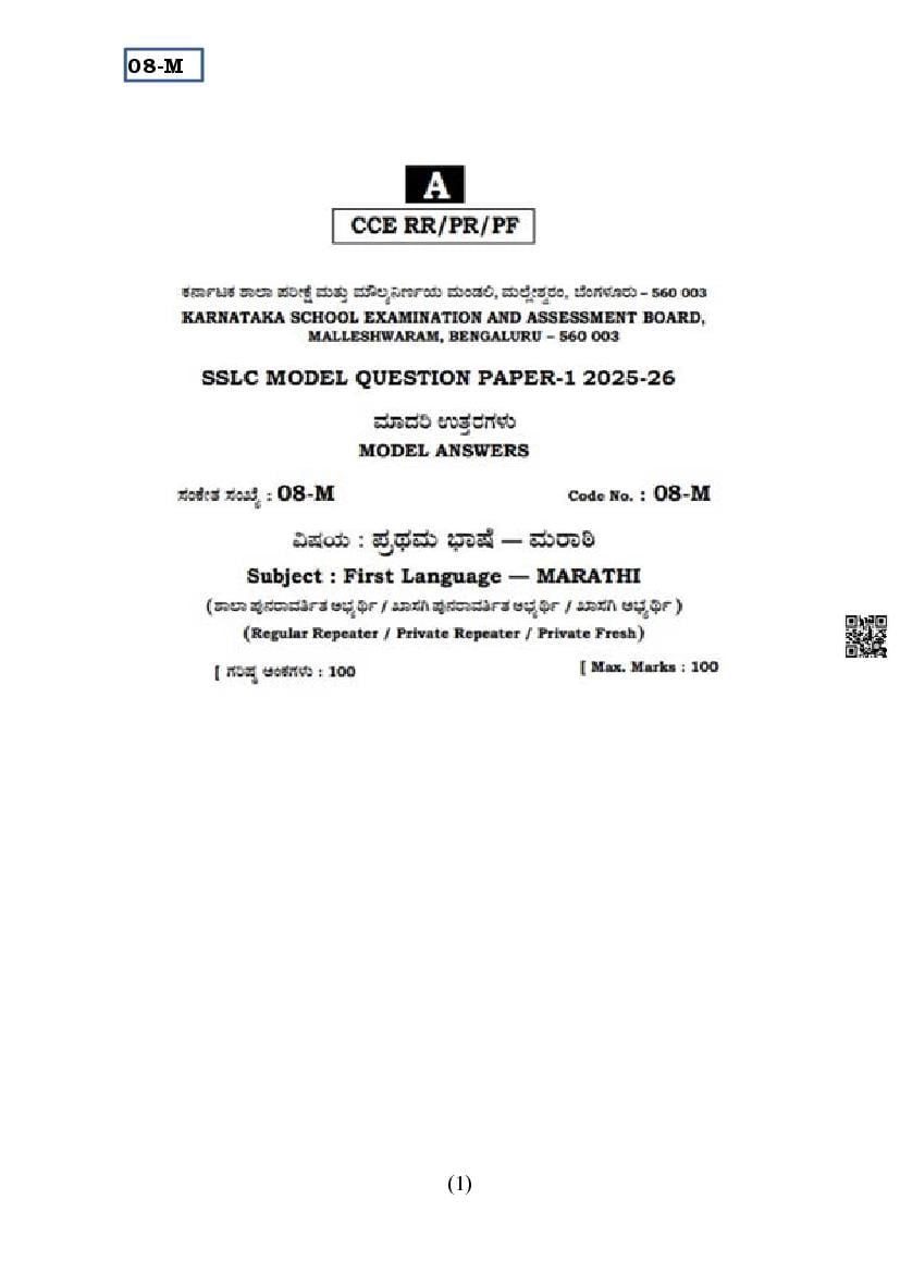 Karnataka SSLC Model Question Paper 2026 Marathi View Download