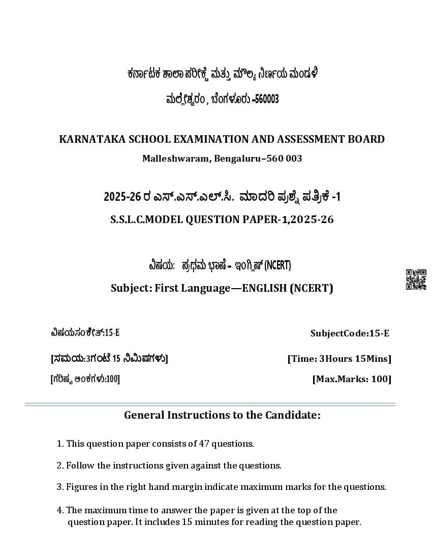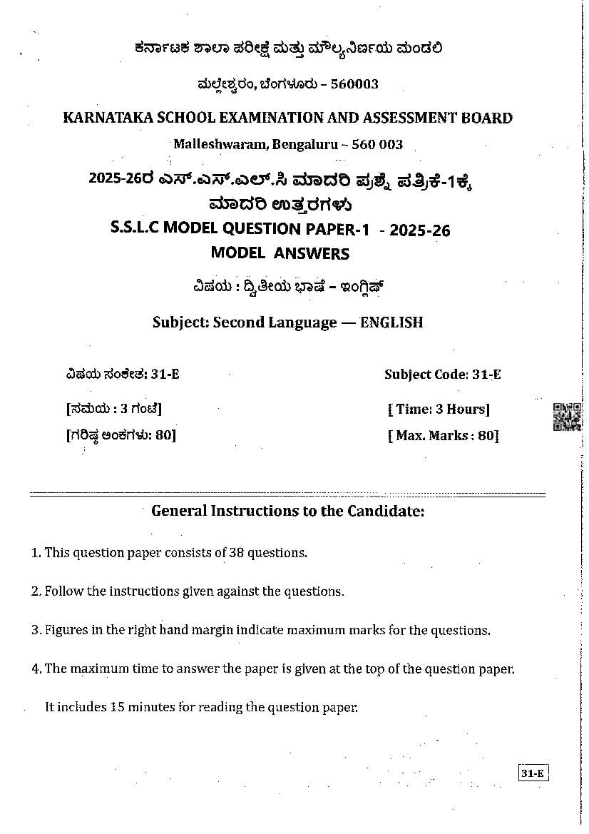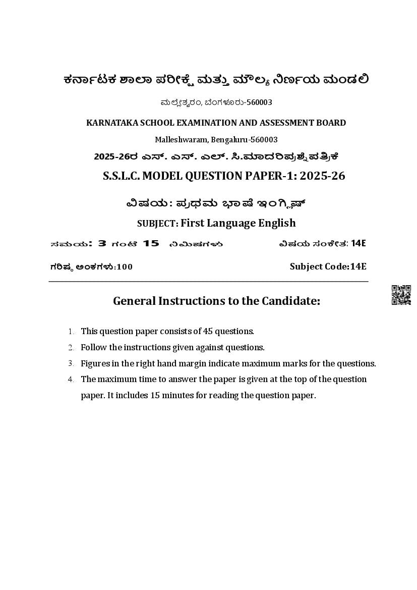 The Karnataka Board SSLC Model Paper for English First Language in English and Kannada languages as follows. KSEEB publishes Karnataka Board model papers to help students do better in their exams.