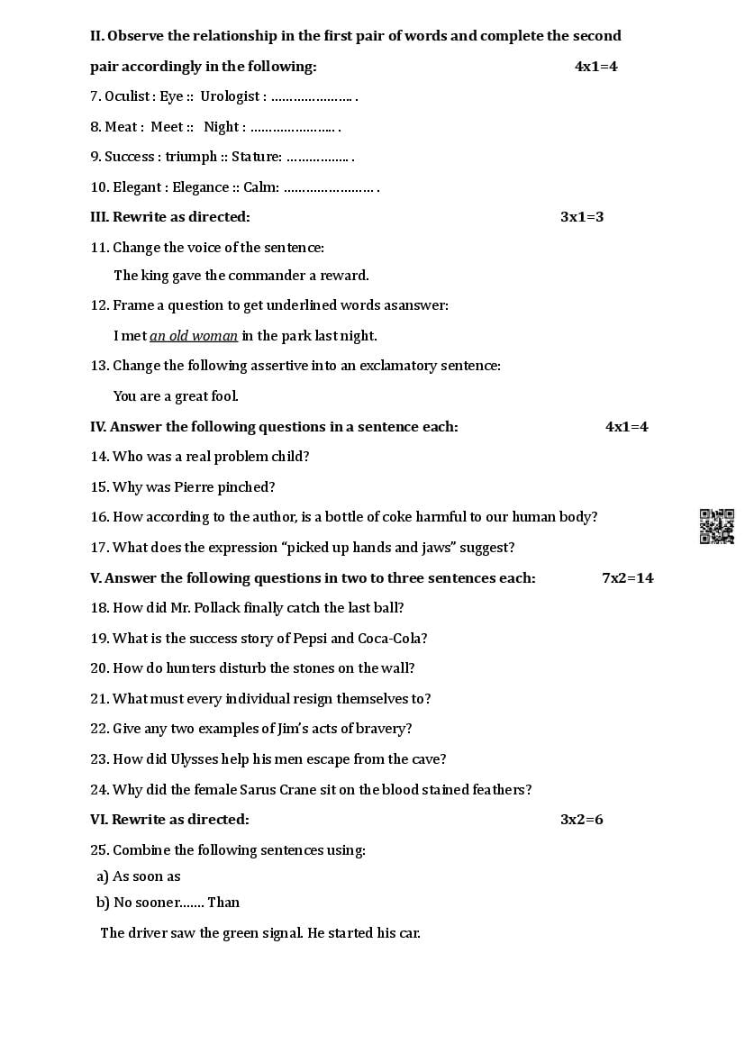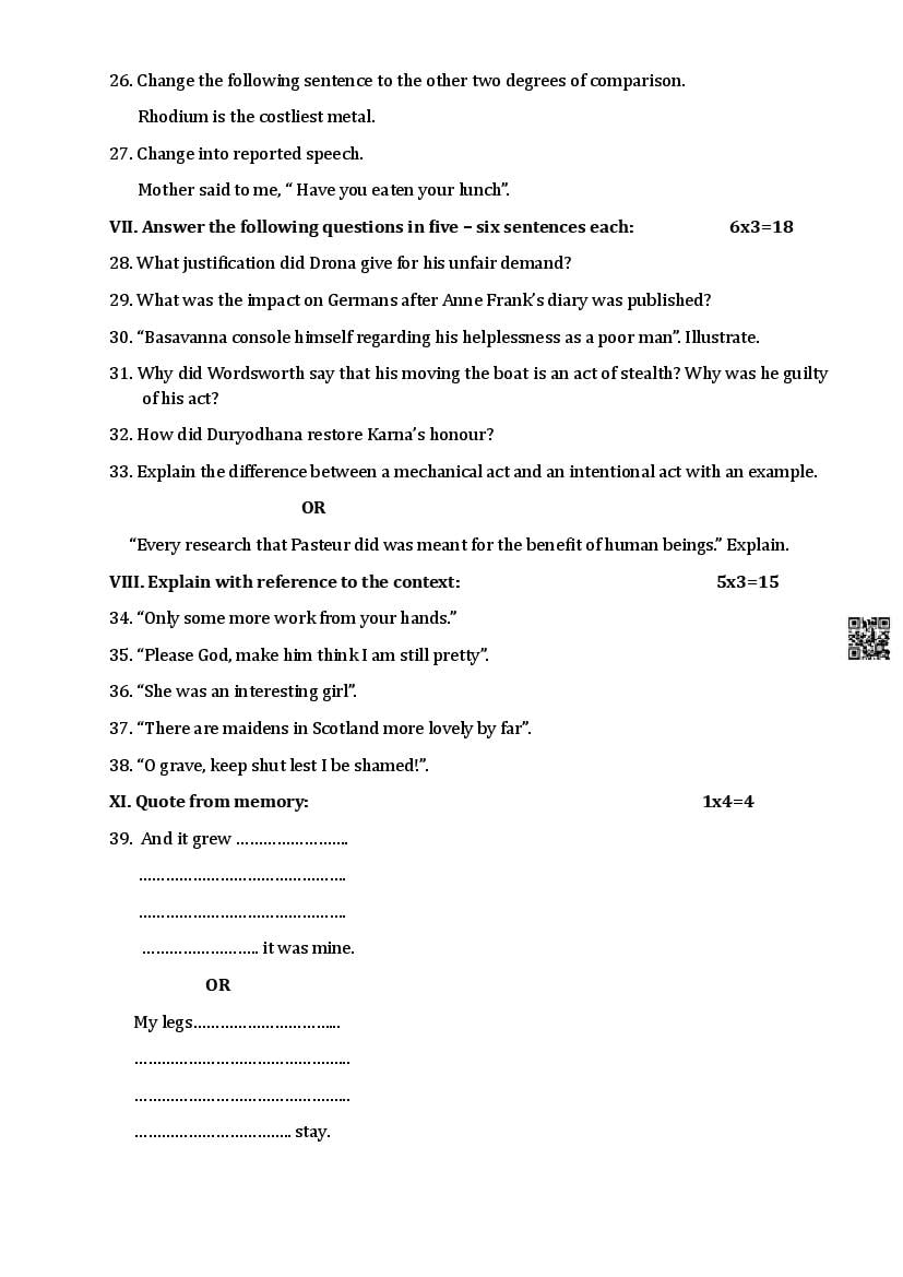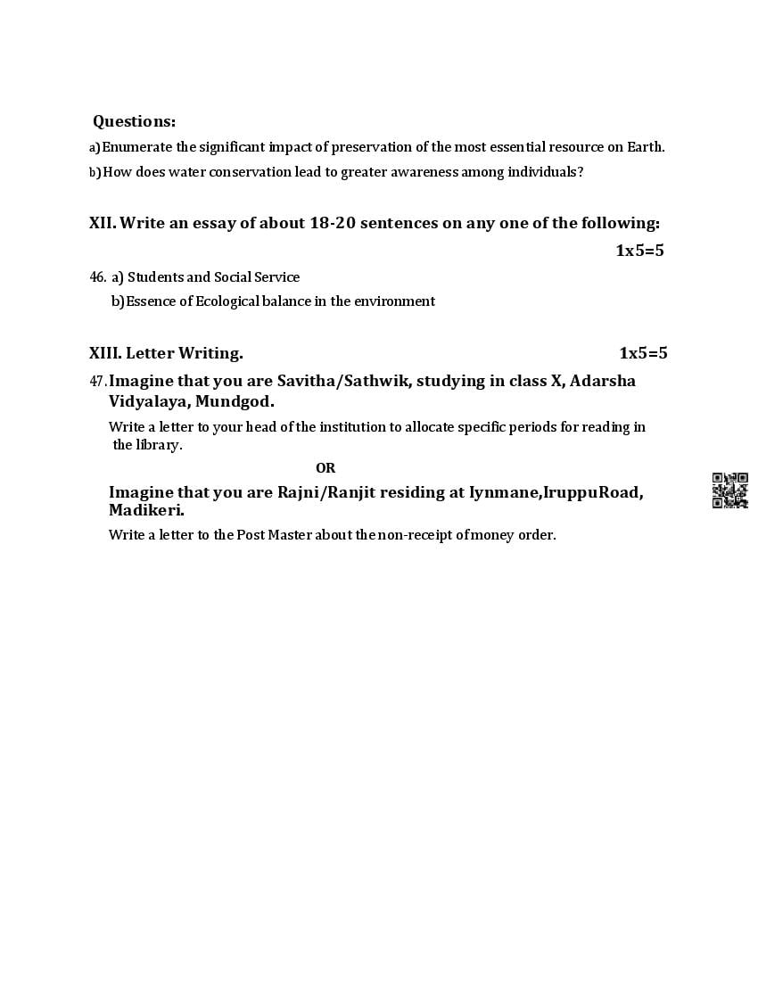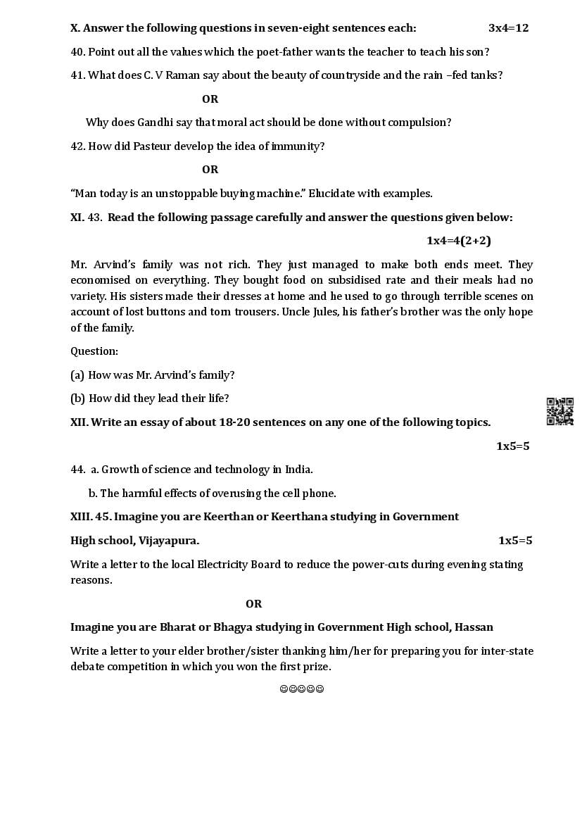 The Karnataka Board SSLC Model Paper for English First Language in English and Kannada languages as follows. KSEEB publishes Karnataka Board model papers to help students do better in their exams.