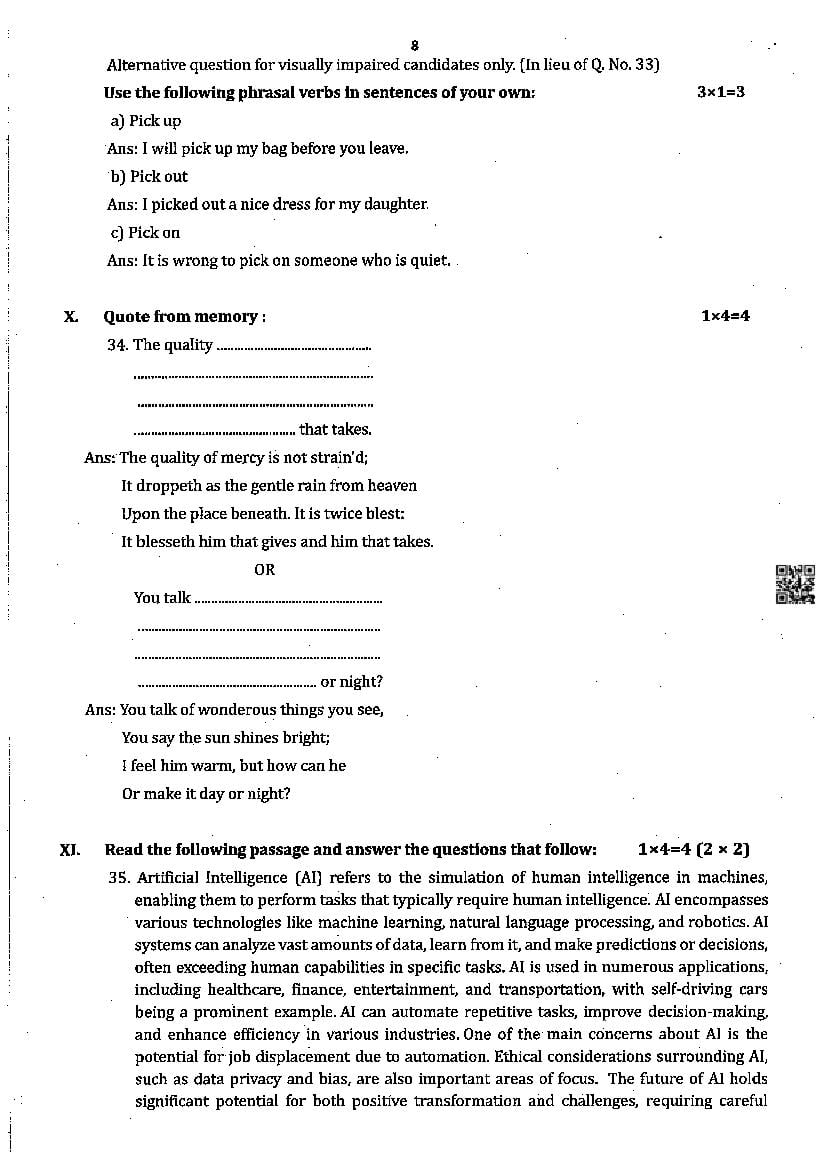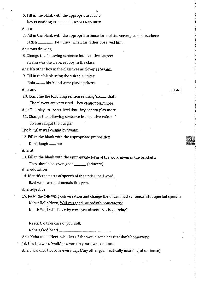 - Karnataka Board Class 8 Model Question Paper