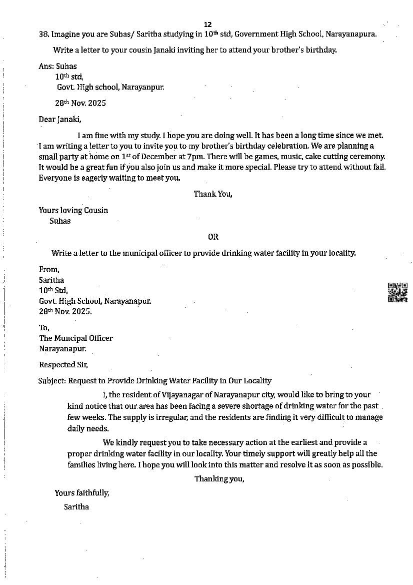 If you have any queries on Karnataka SSLC English First Language Model Question Paper 2026, then please ask in comments below.