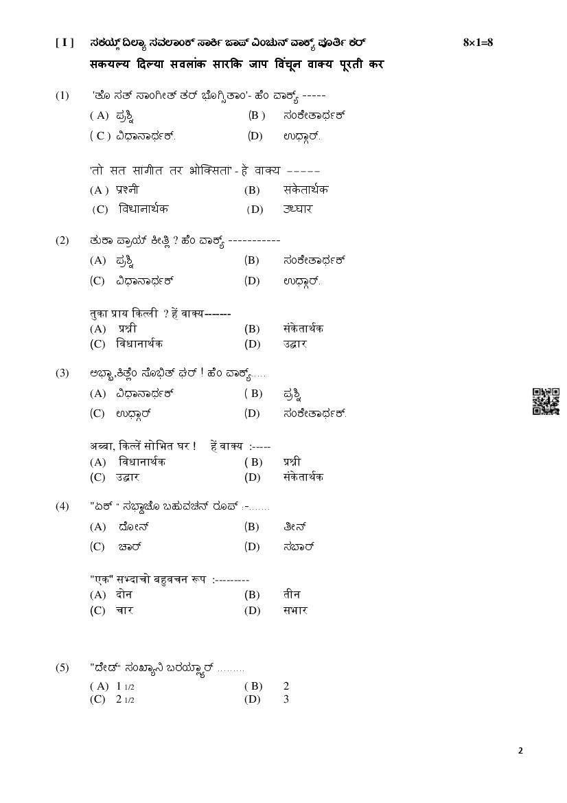 Karnataka SSLC Model Question Paper 2026 Konkani View Download