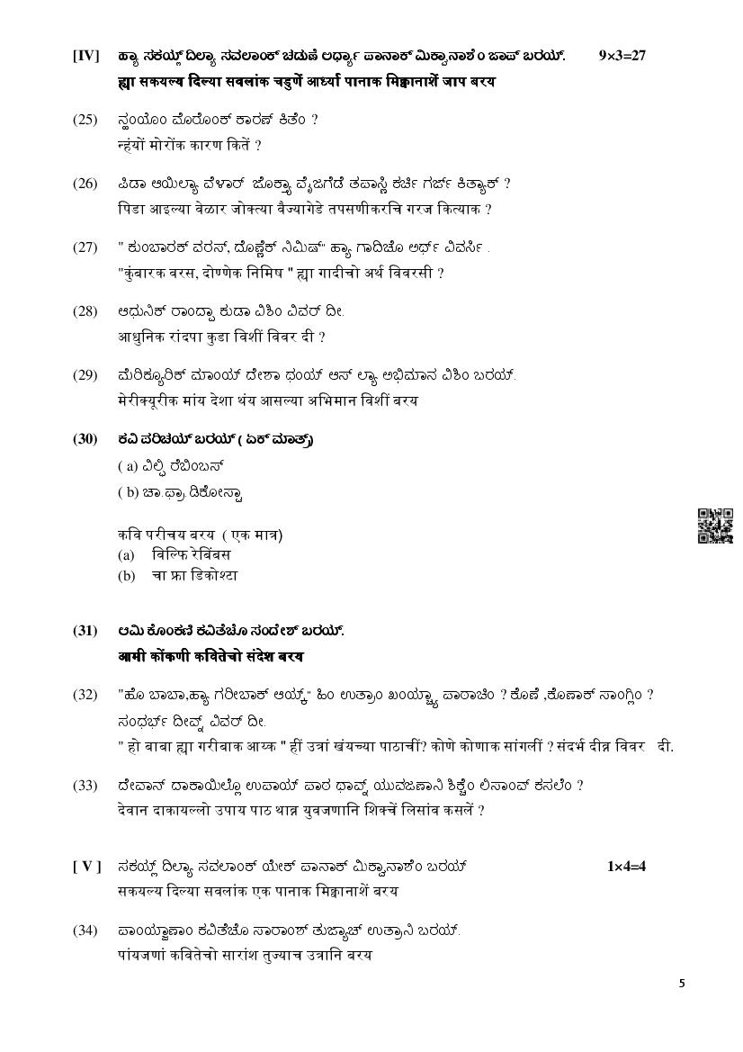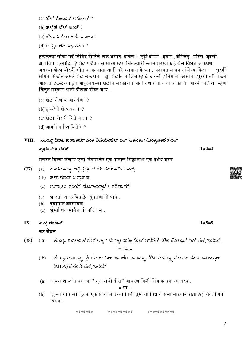 Karnataka SSLC Konkni Model Question Paper 2024 Download Link – Click Here to Download PDF