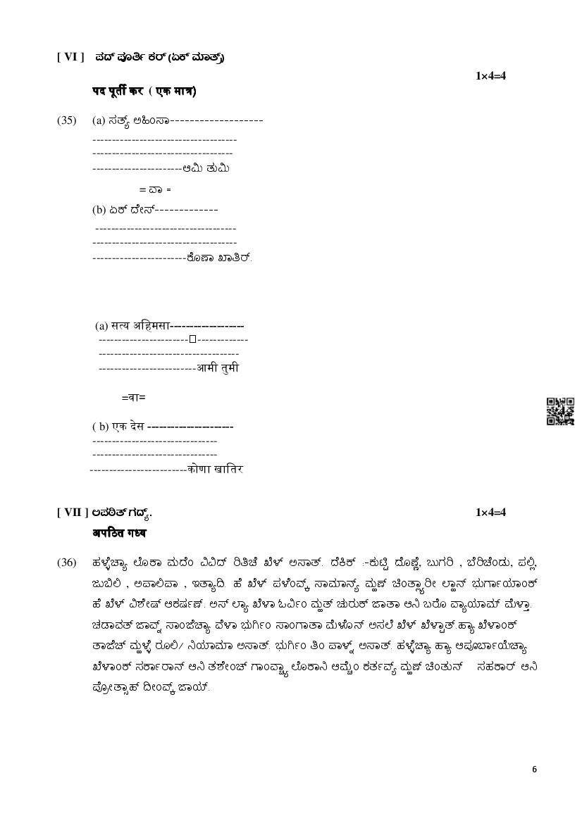 Karnataka SSLC Konkni Model Question Paper 2026