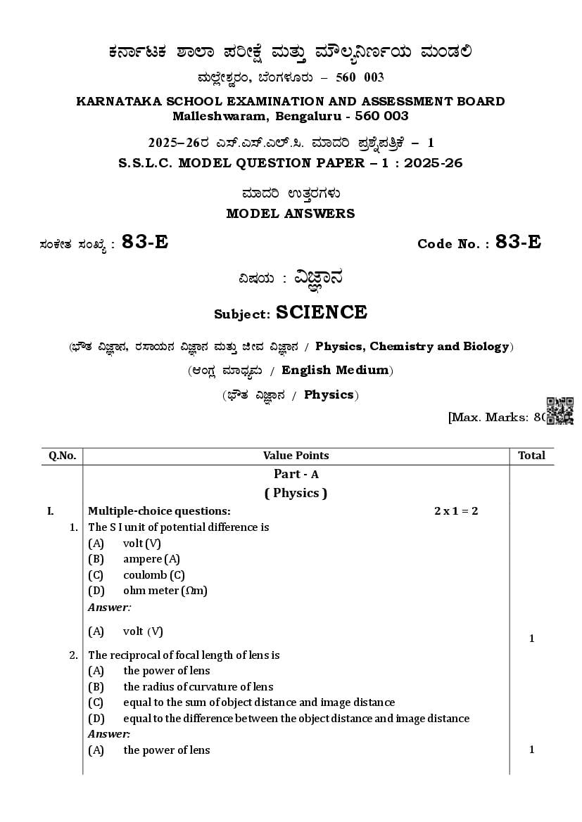 If you have any queries on Karnataka SSLC Science Model Question Paper 2026, then please ask in comments below.