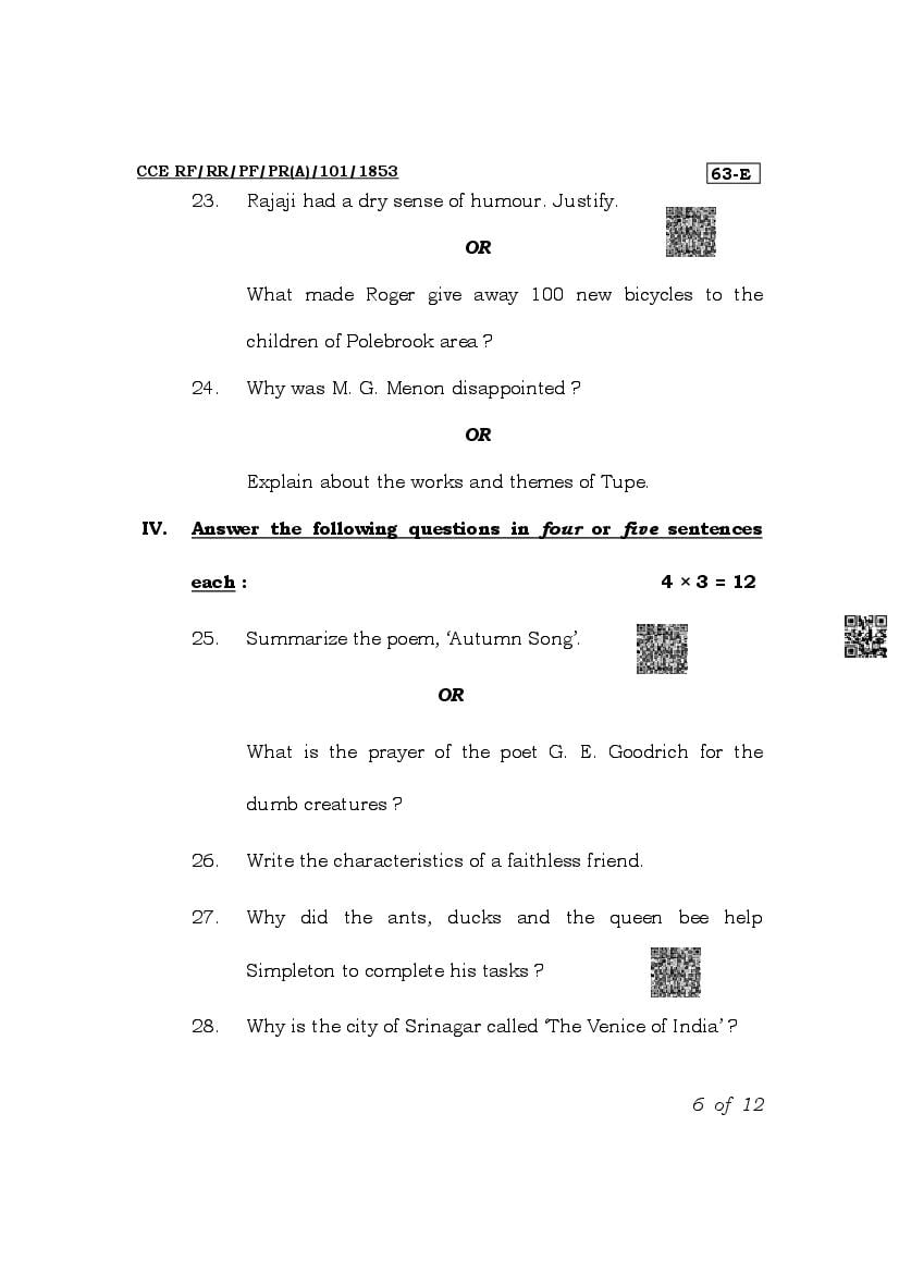 The latest released complete class 10 English Third Language question paper PDF is as given below.