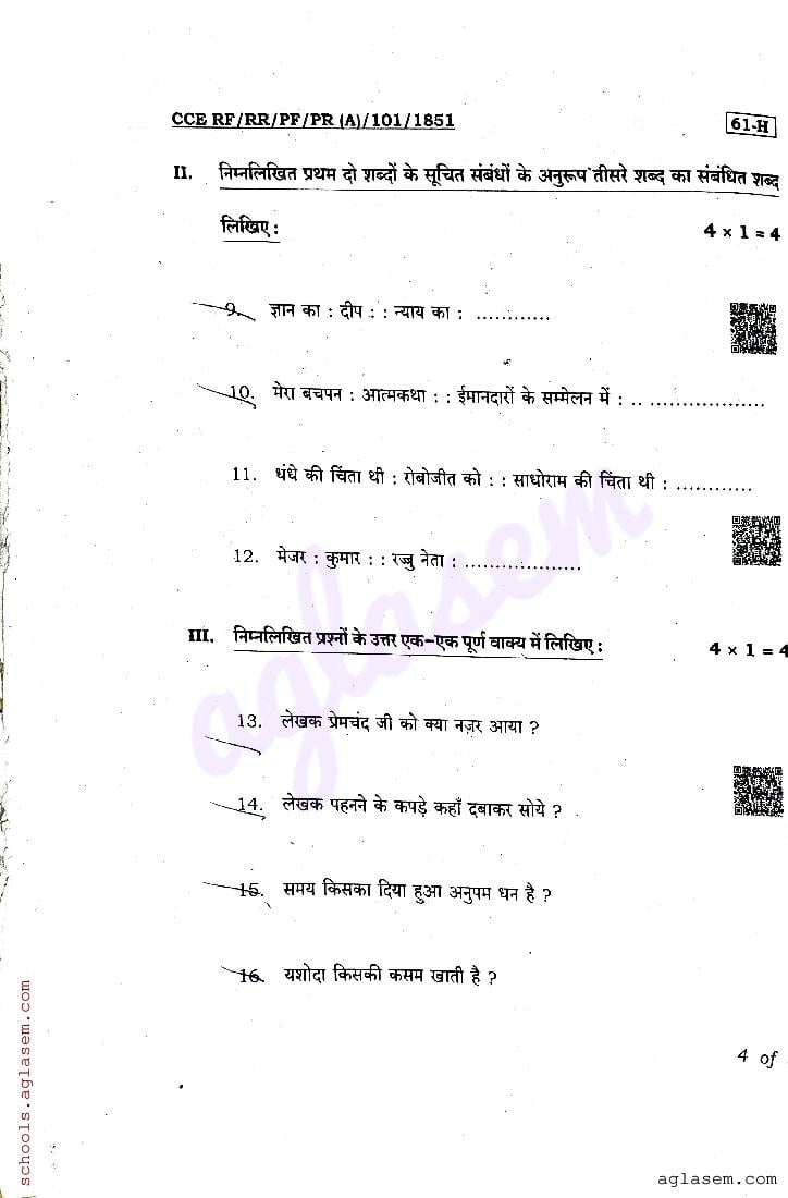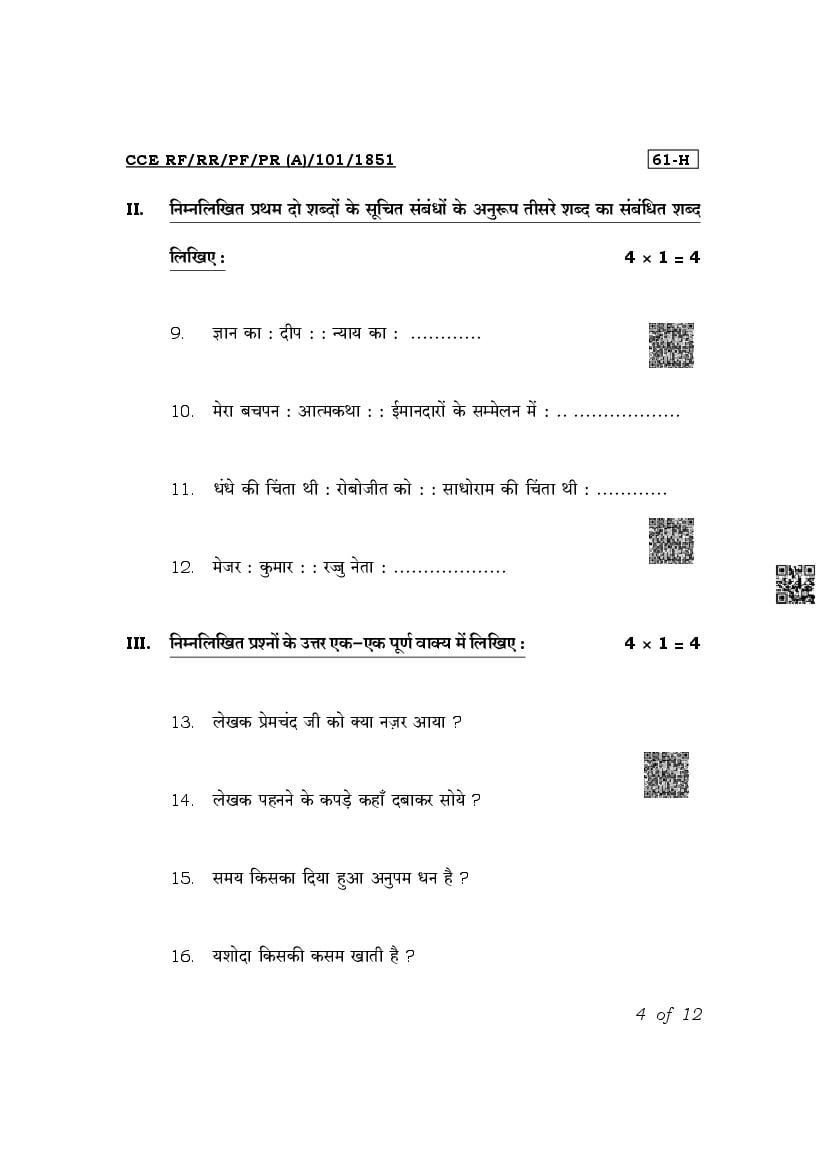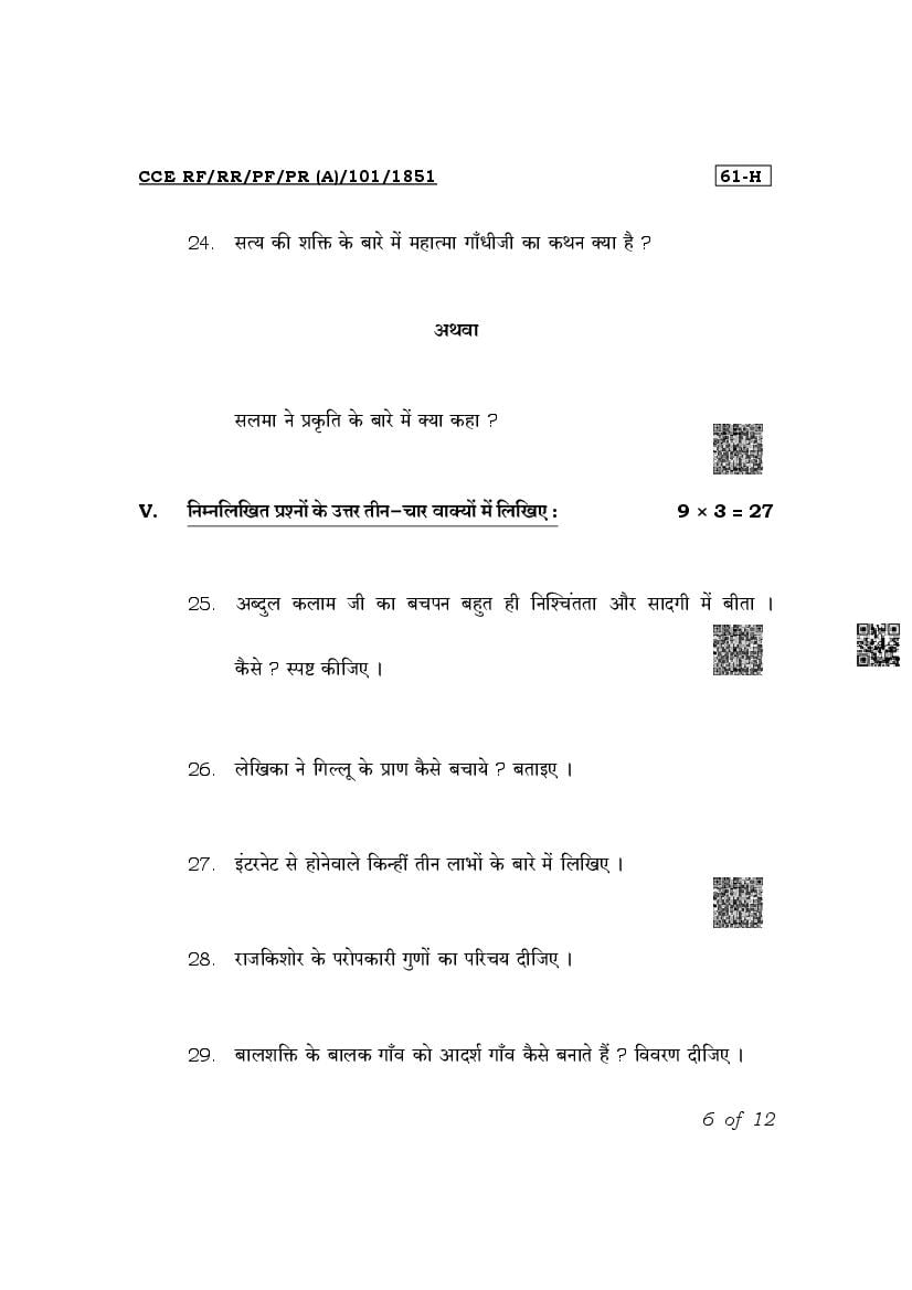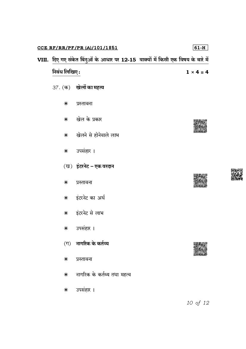 The latest released complete class 10 Hindi Third Language question paper PDF is as given below.