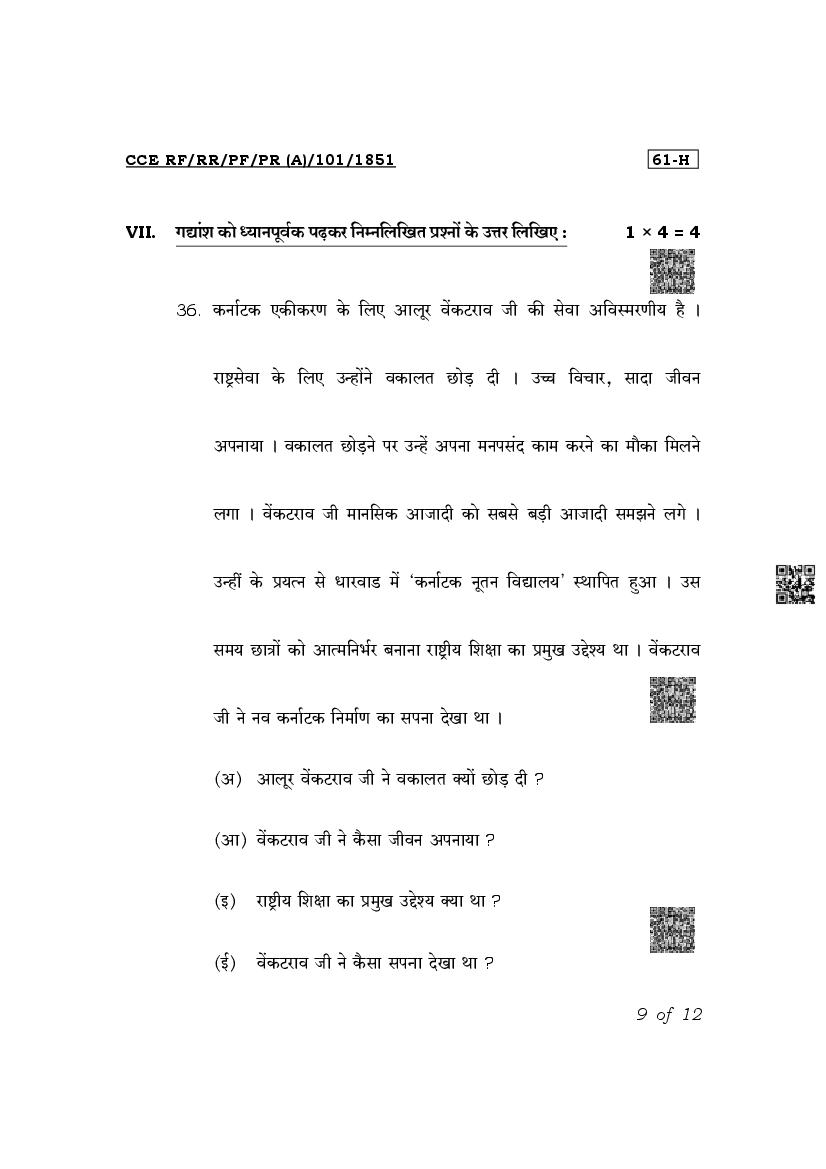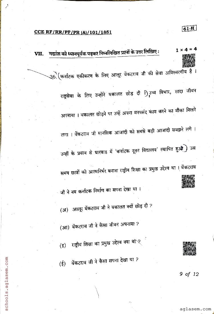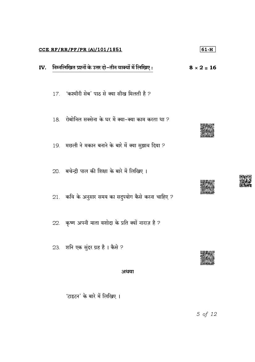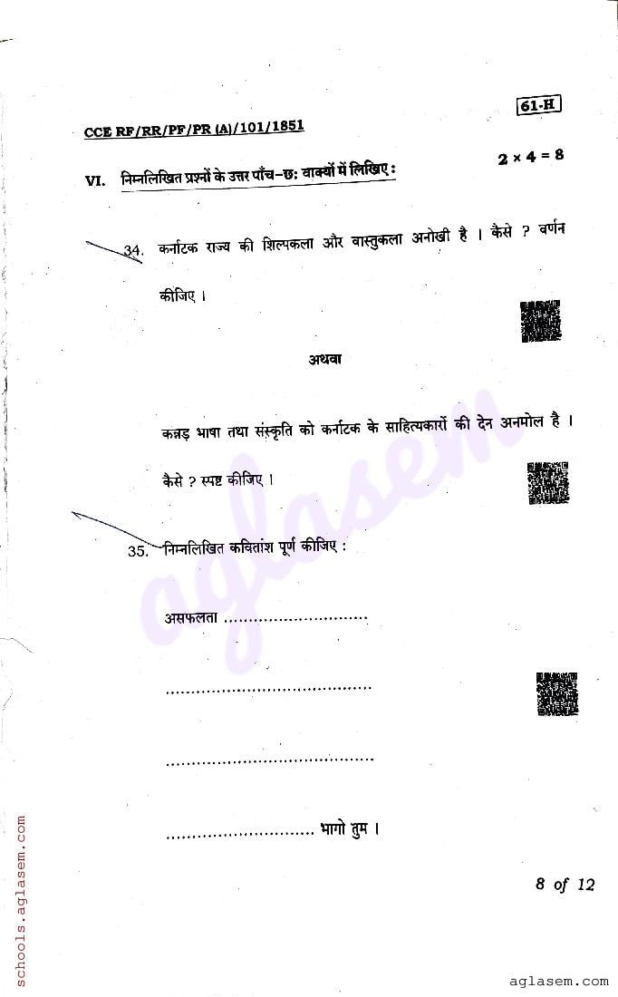 The latest released complete class 10 Hindi Third Language question paper PDF is as given below.