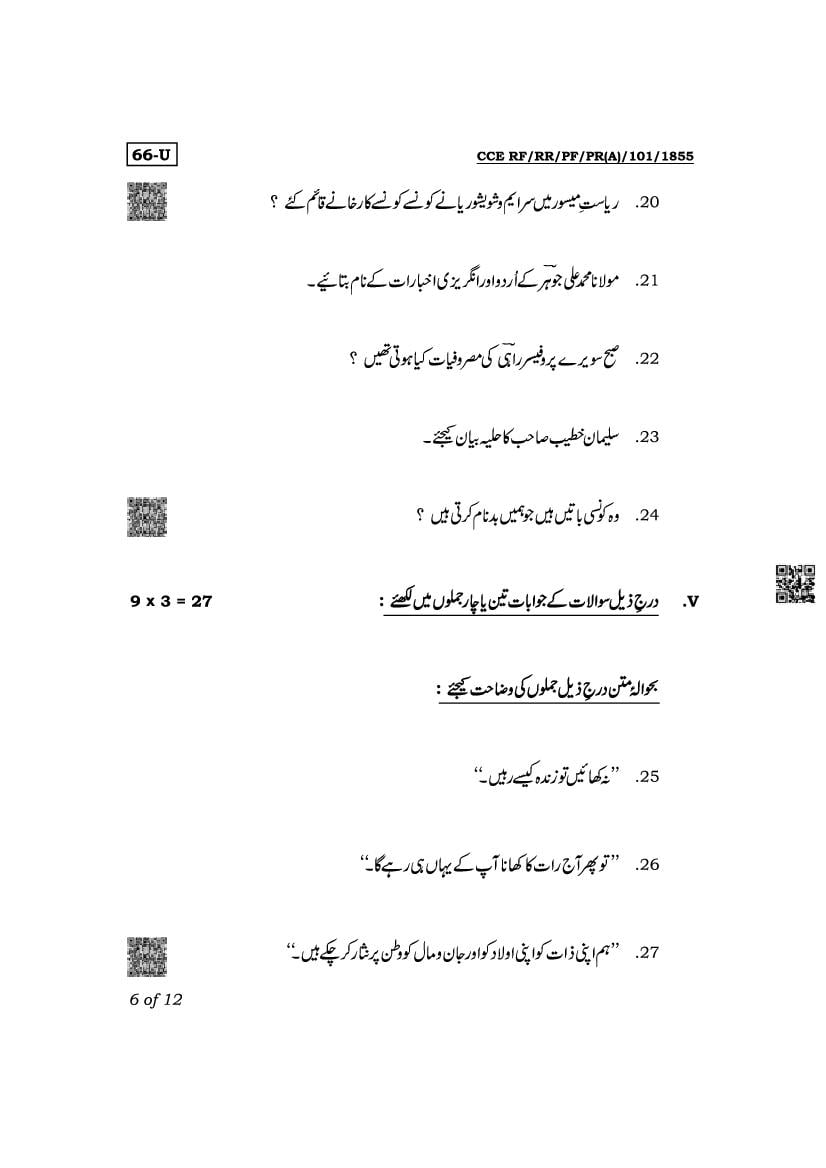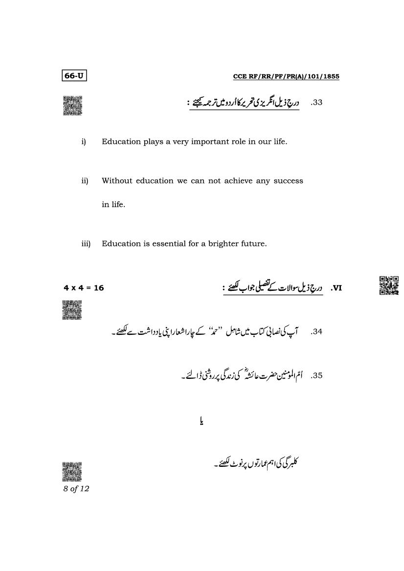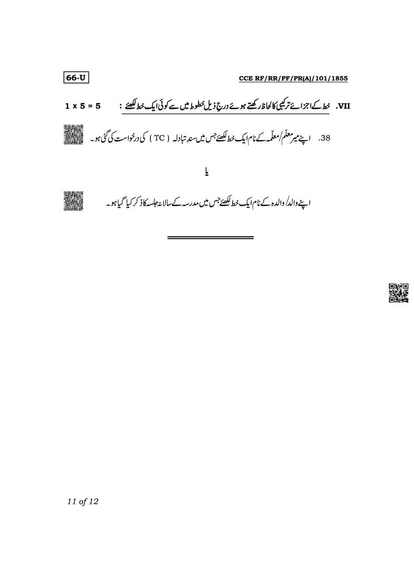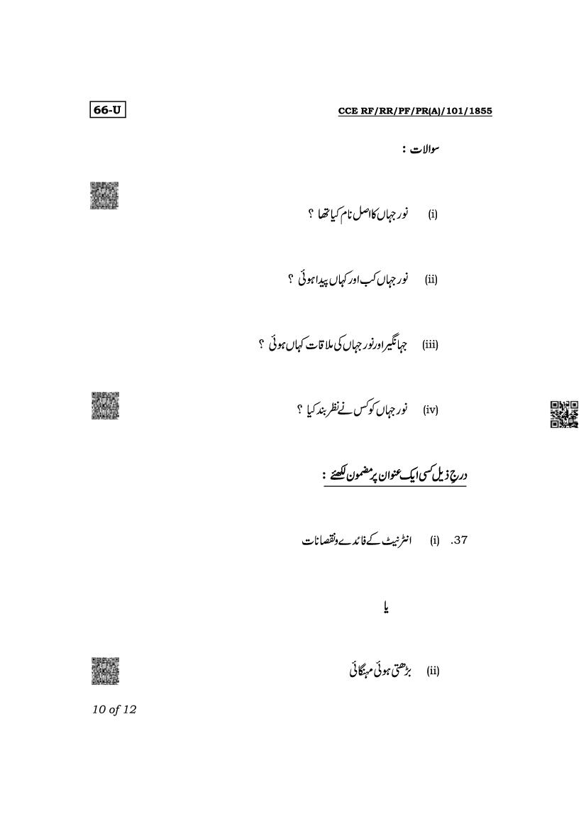 The latest released complete class 10 Urdu Third Language question paper PDF is as given below.