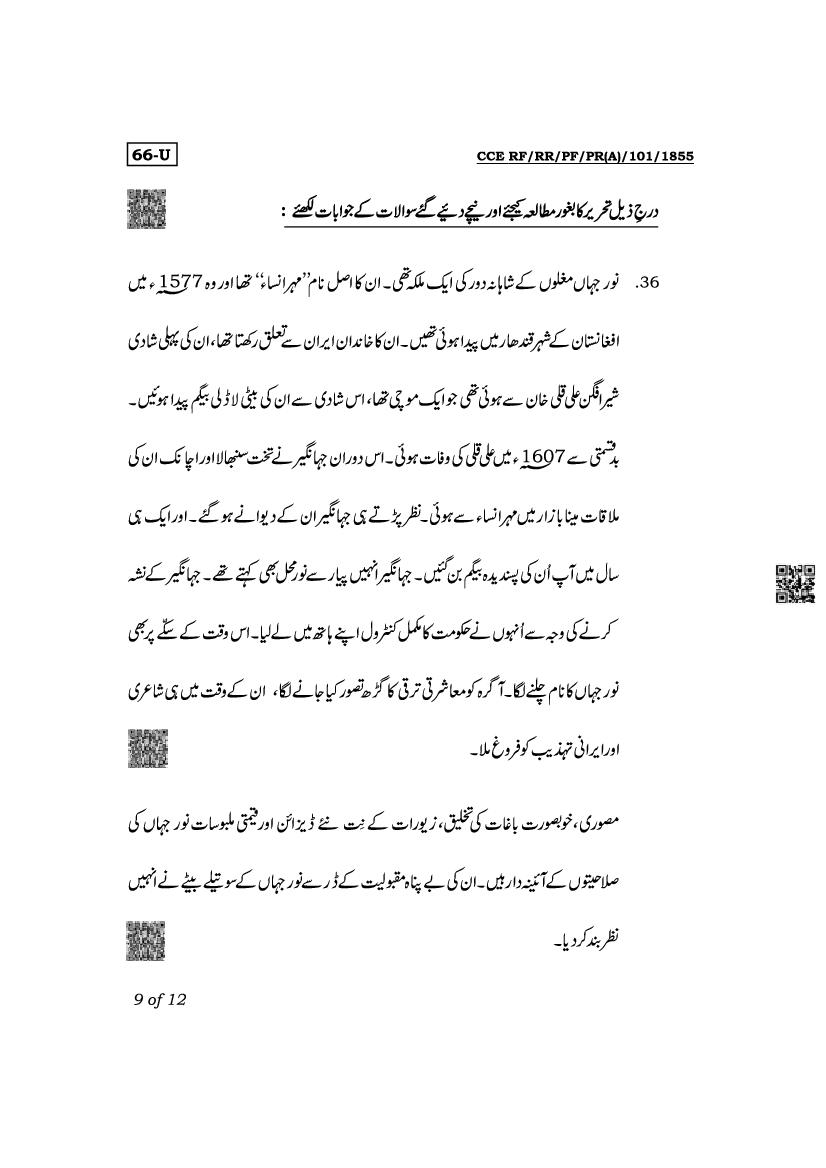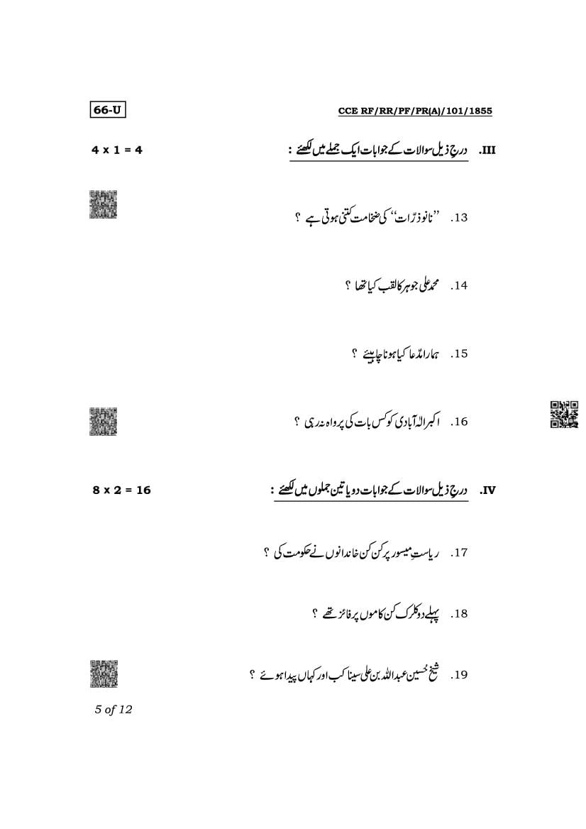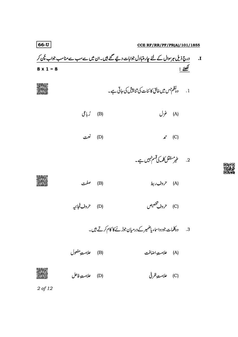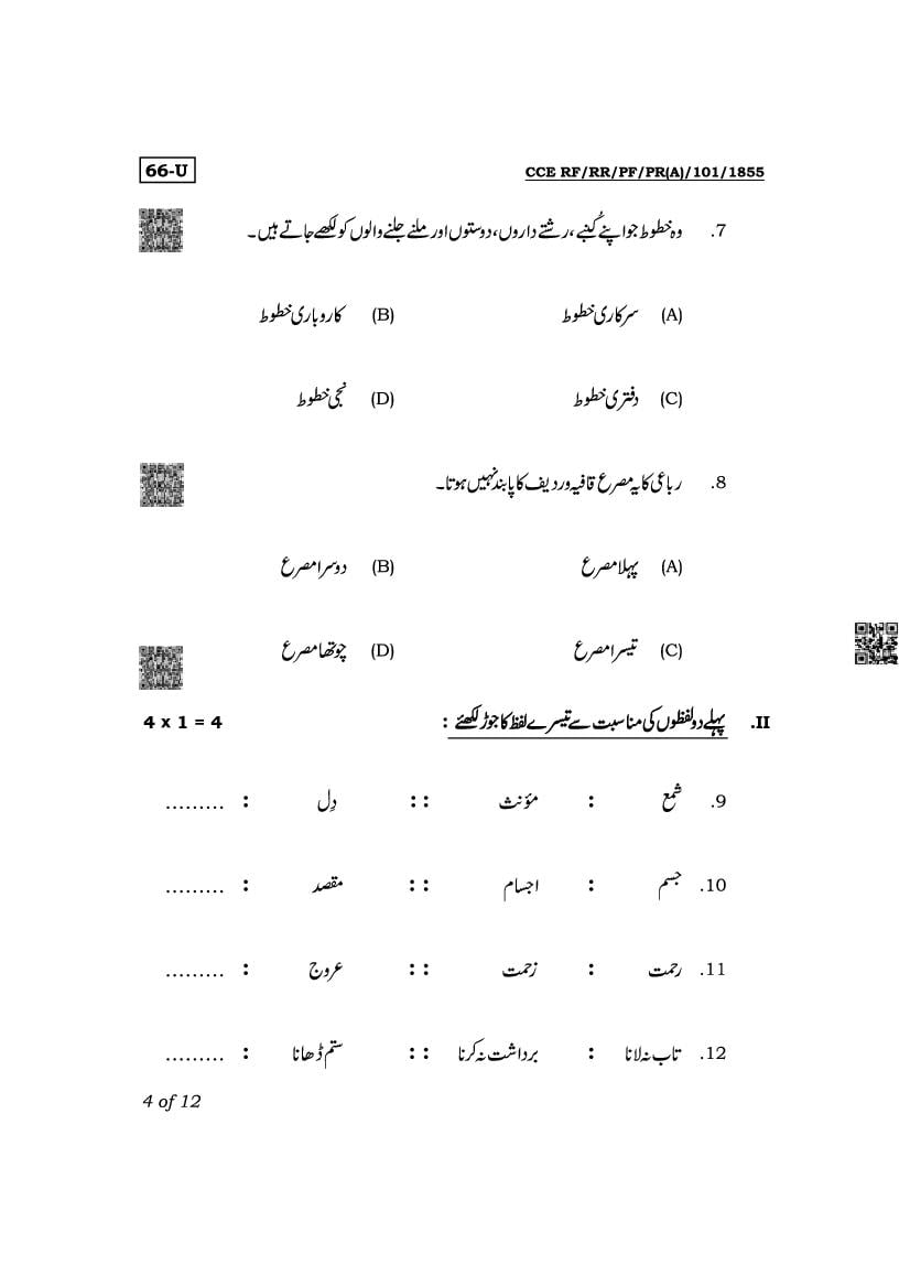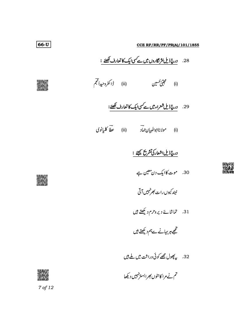 The latest released complete class 10 Urdu Third Language question paper PDF is as given below.