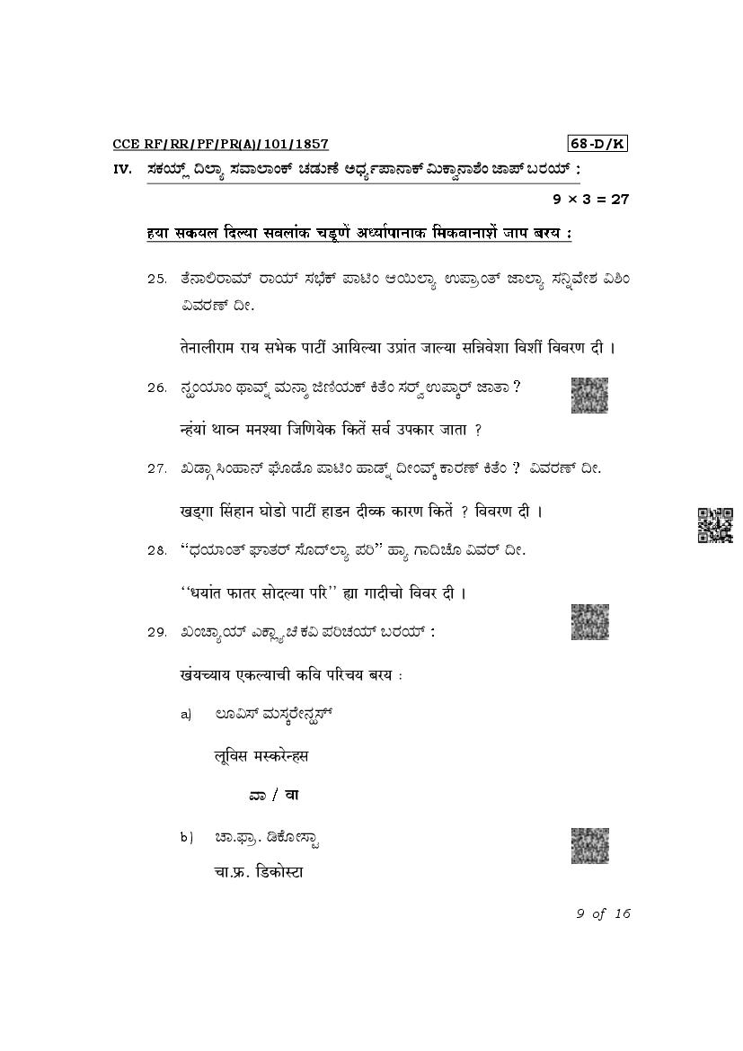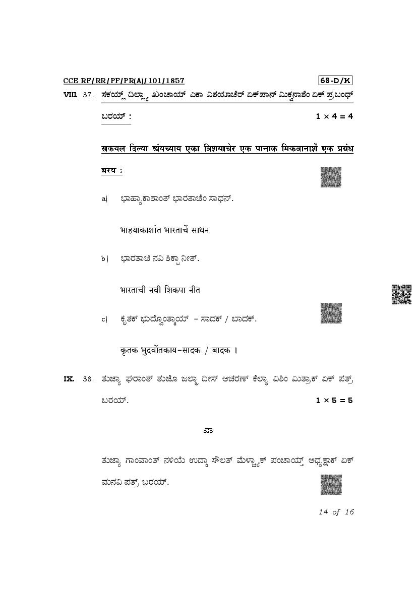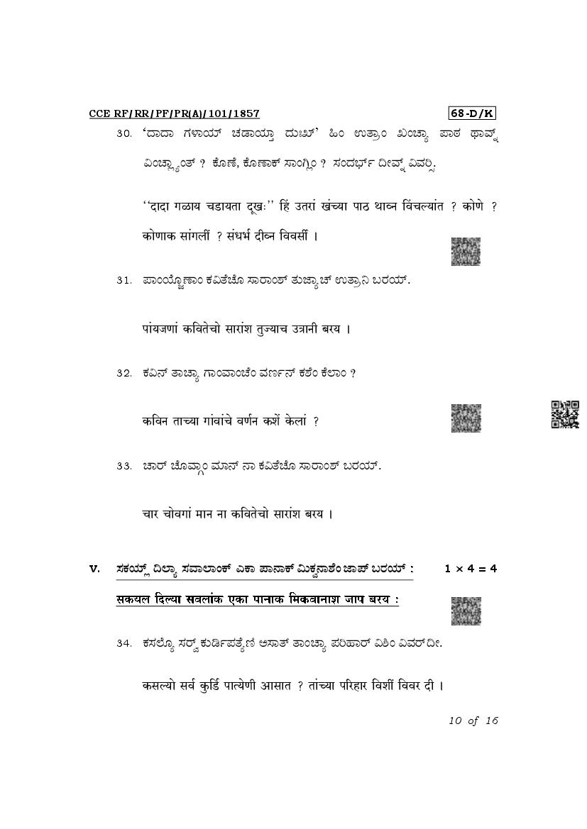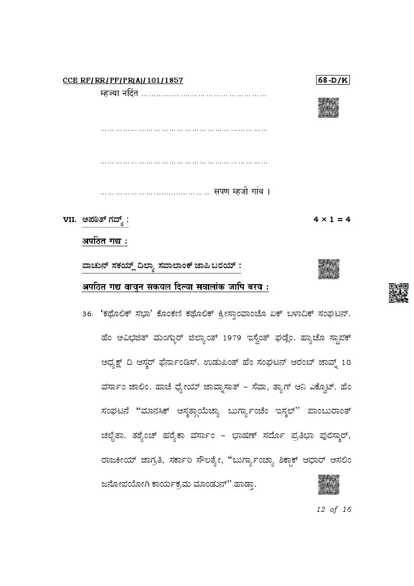 The latest released complete class 10 Konkani question paper PDF is as given below.