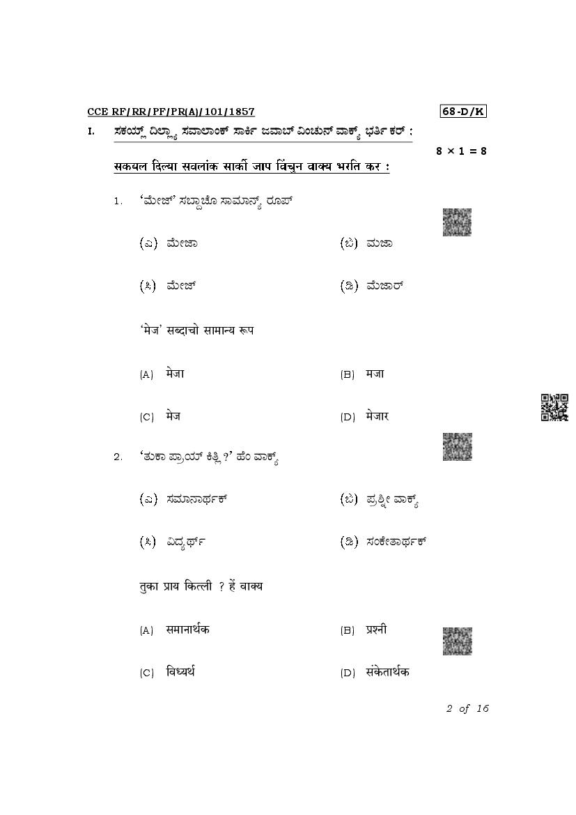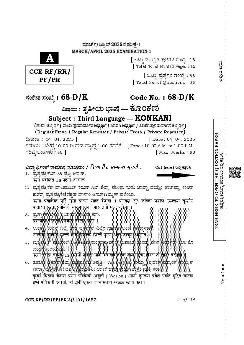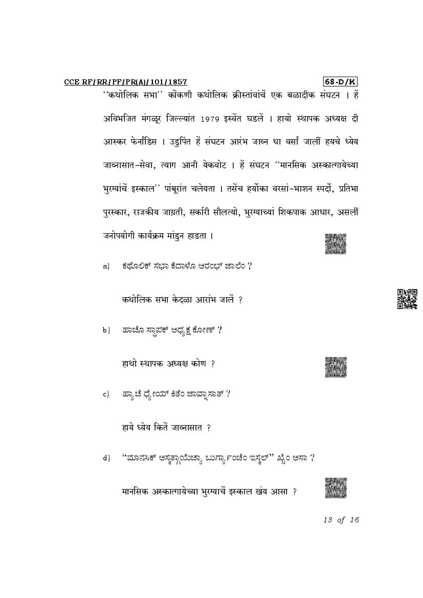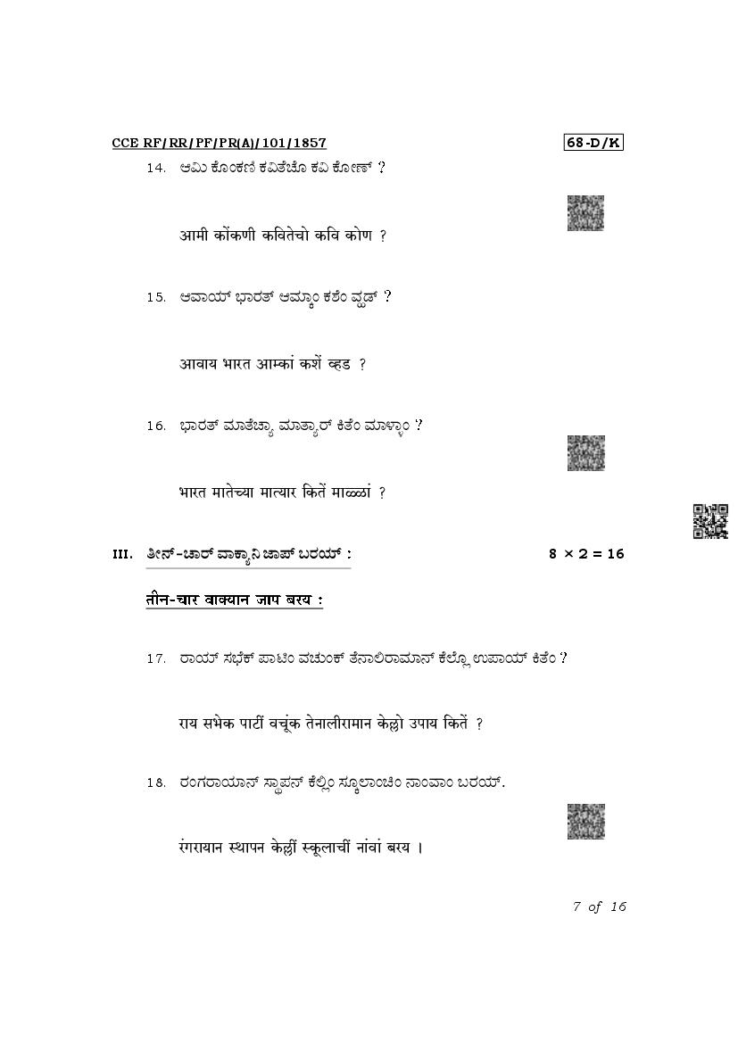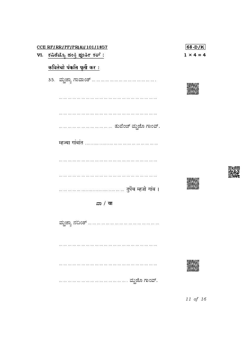 The latest released complete class 10 Konkani question paper PDF is as given below.