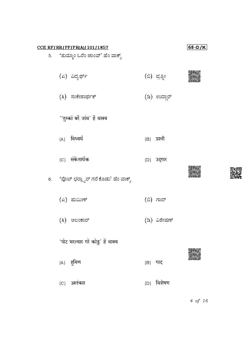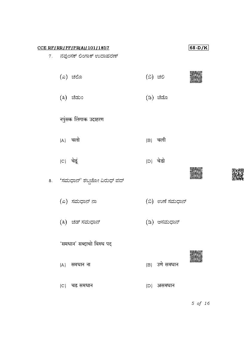 The Karnataka Board Question Paper of class 10th (SSLC) for Konkani is as follows.