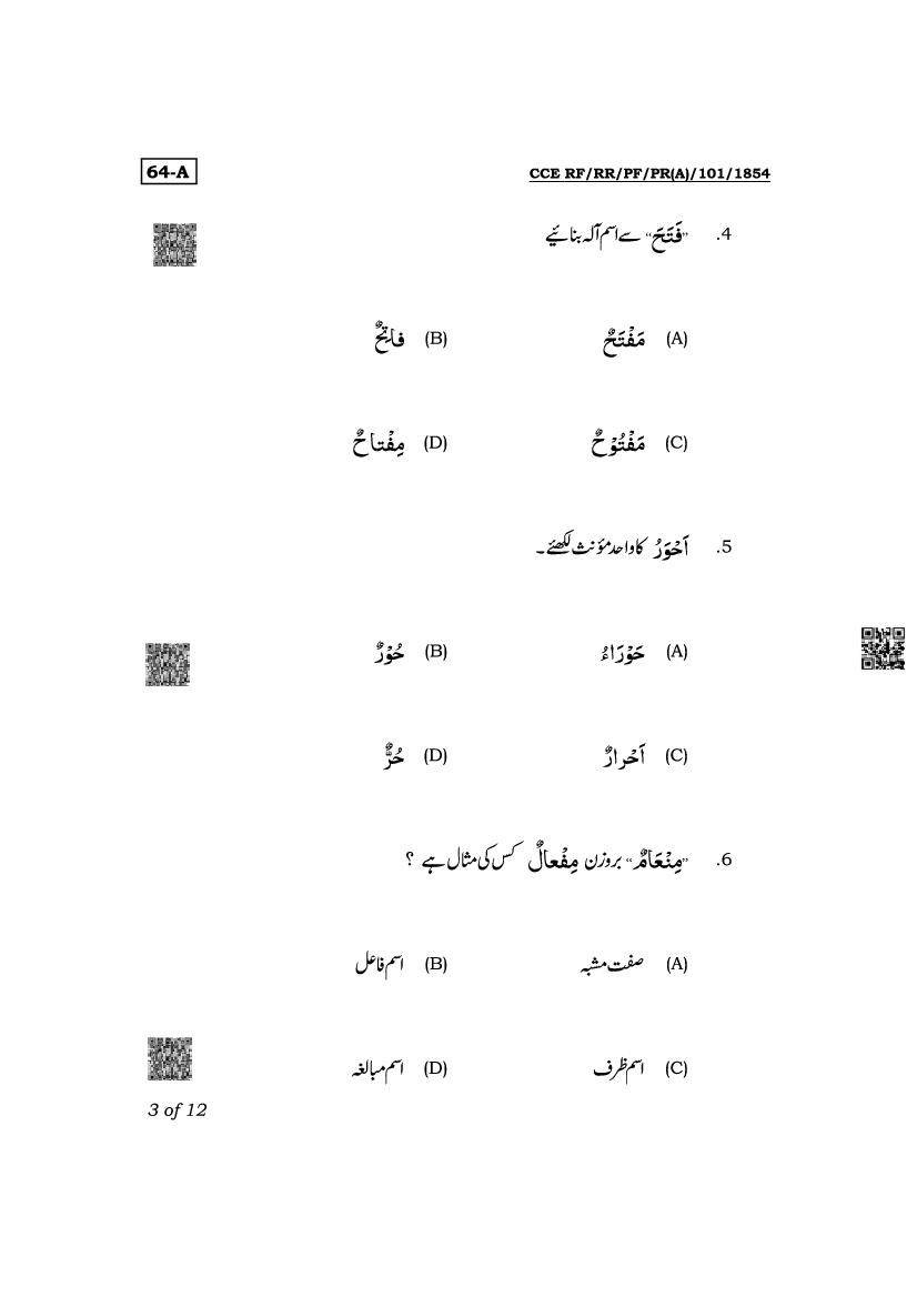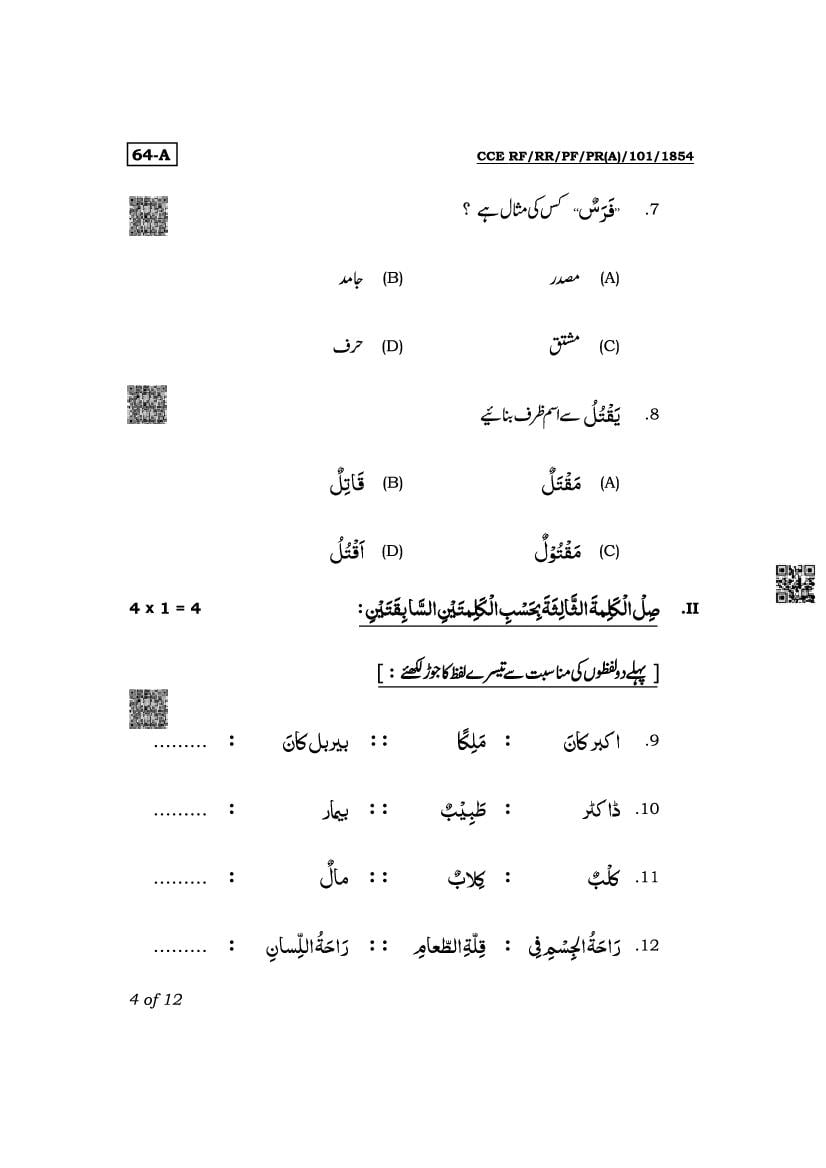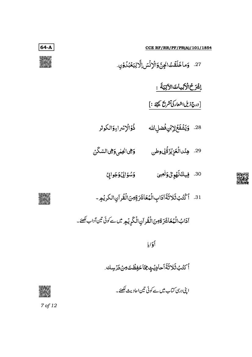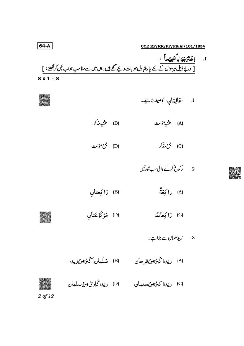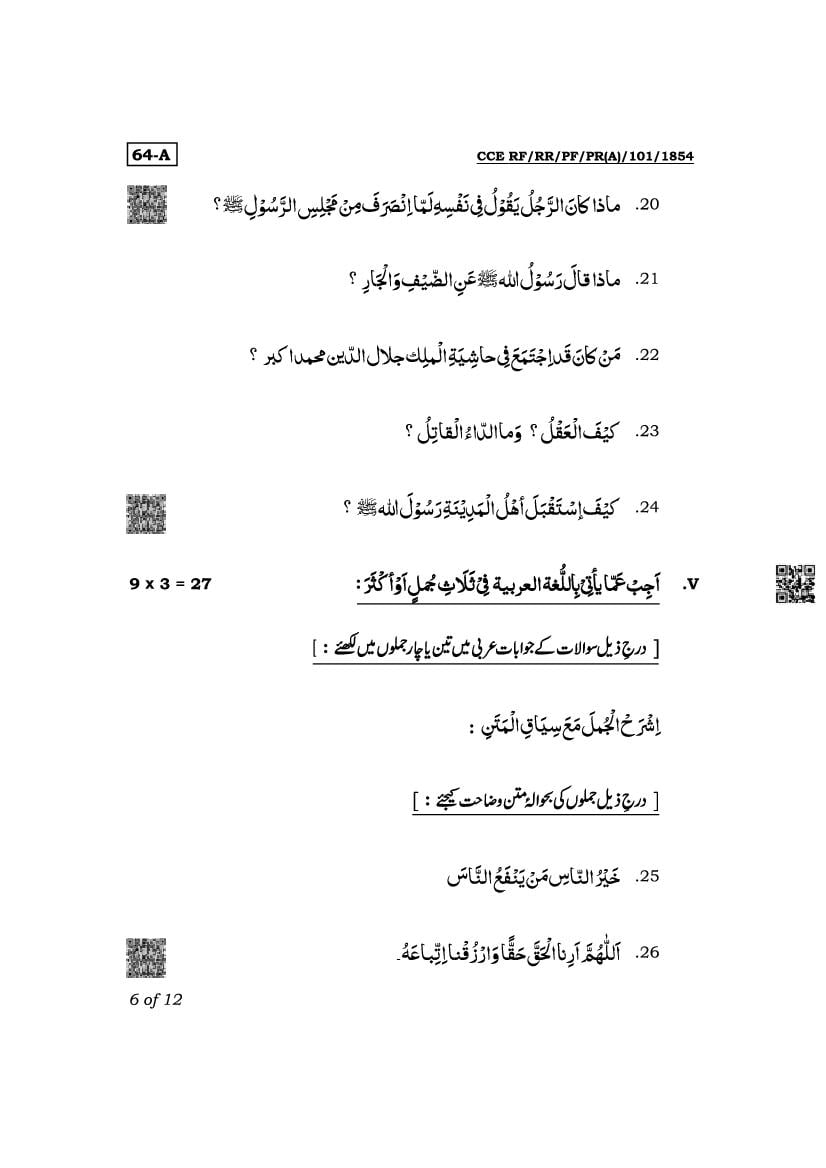 The latest released complete class 10 Arabic question paper PDF is as given below.
