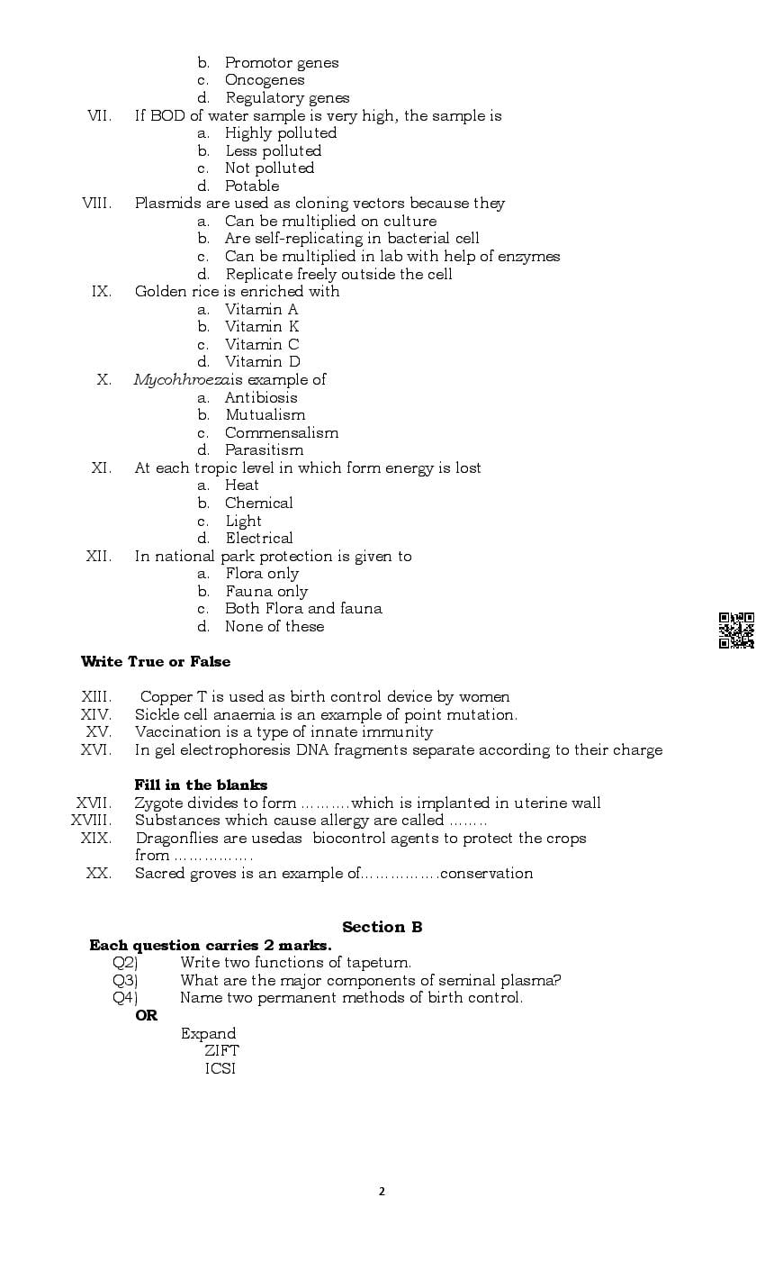 The Punjab Board Class 12 Model Paper for Biology is the sample paper with specimen questions from latest PSEB syllabus. Moreover the exam pattern in Biology sample paper is same as actual board exam. Therefore the Biology model question paper helps you prepare for 12th class Punjab board exams.