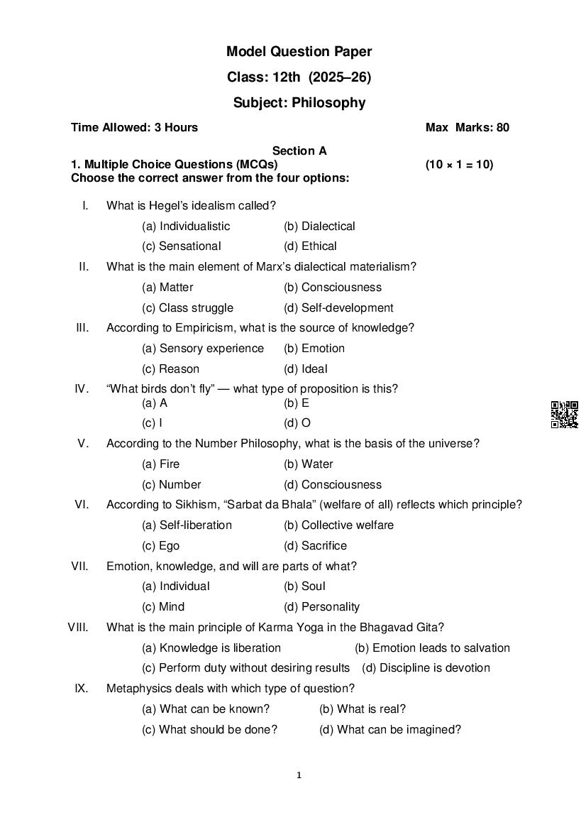 If you have any queries on PSEB 12th Philosophy Sample Paper 2026, then please ask in comments below.