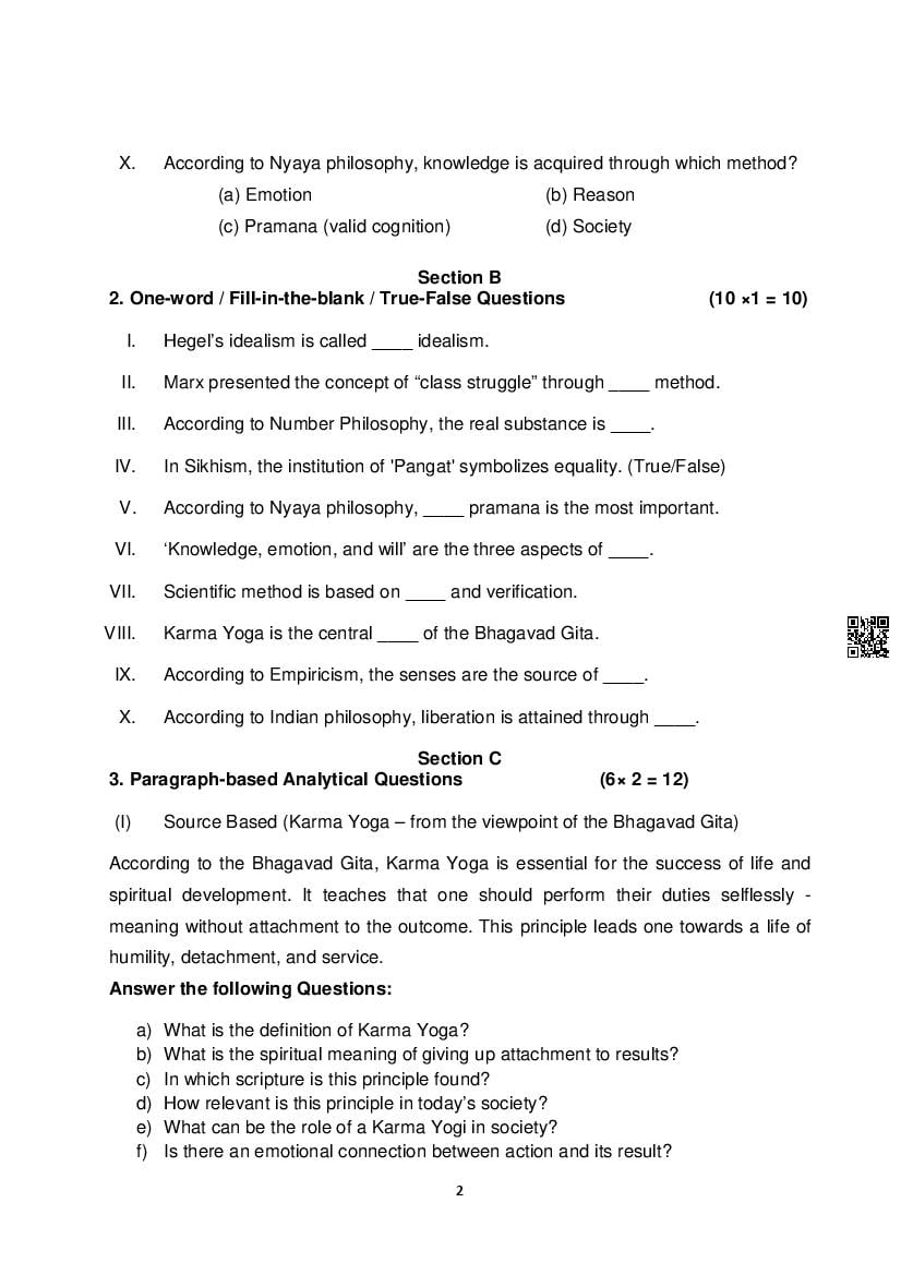 • Before solving Philosophy sample paper, first complete Class 12 syllabus from Philosophy textbook.