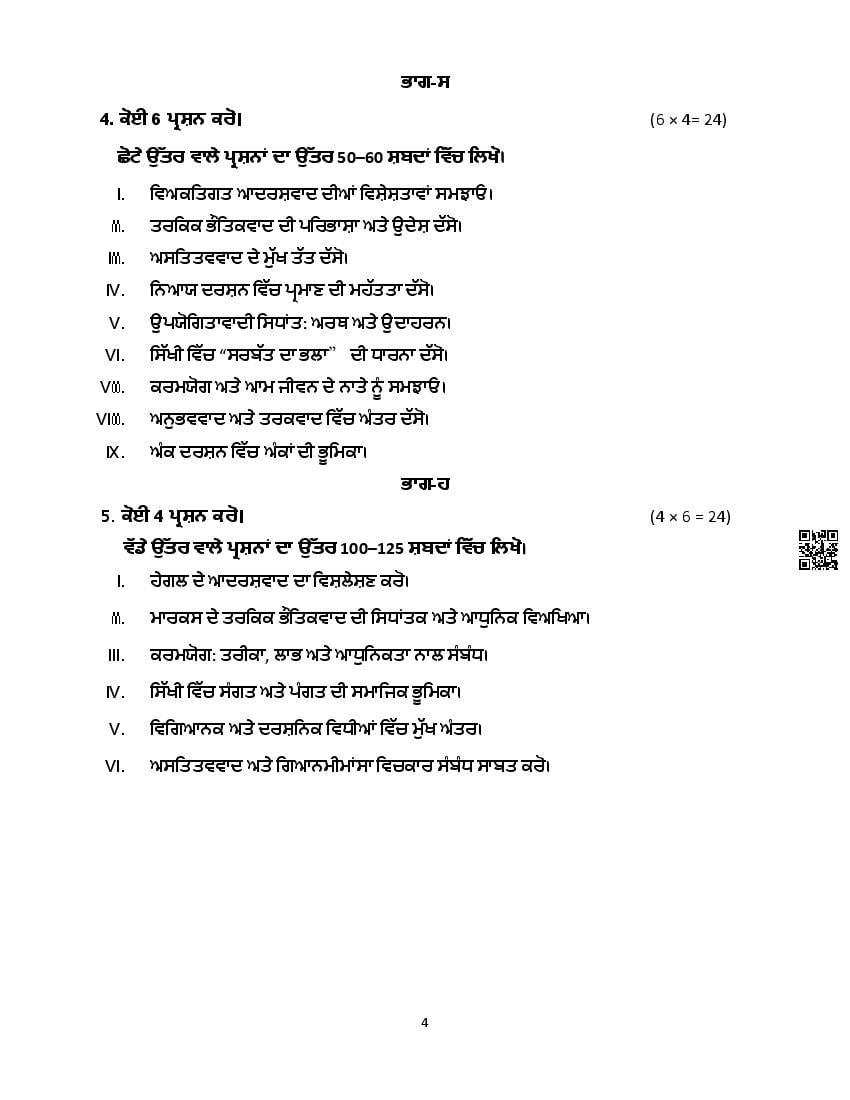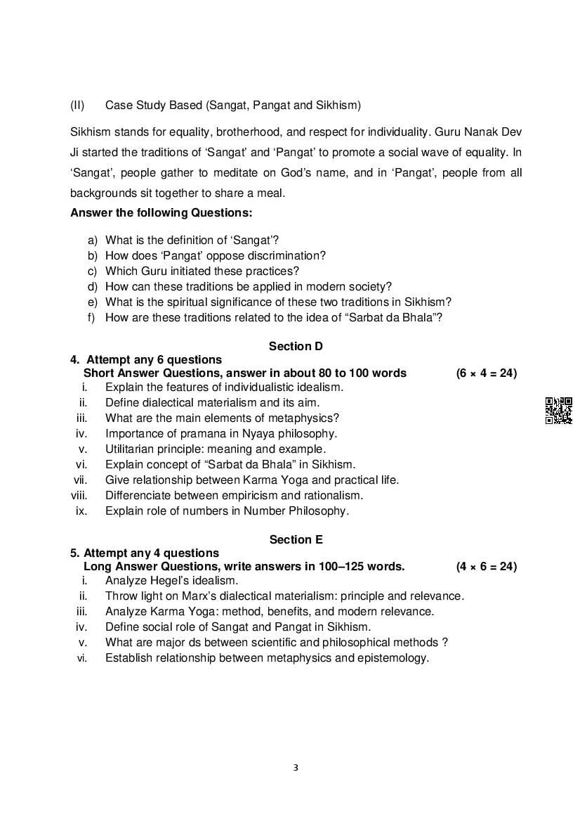 The Punjab Board Class 12 Model Paper for Philosophy is the sample paper with specimen questions from latest PSEB syllabus. Moreover the exam pattern in Philosophy sample paper is same as actual board exam. Therefore the Philosophy model question paper helps you prepare for 12th class Punjab board exams.