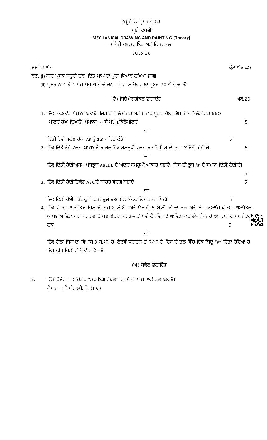 PSEB 10th Sample Paper 2026 Mechanical Drawing And Painting View Download