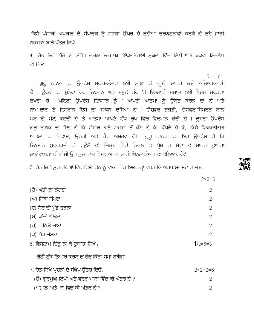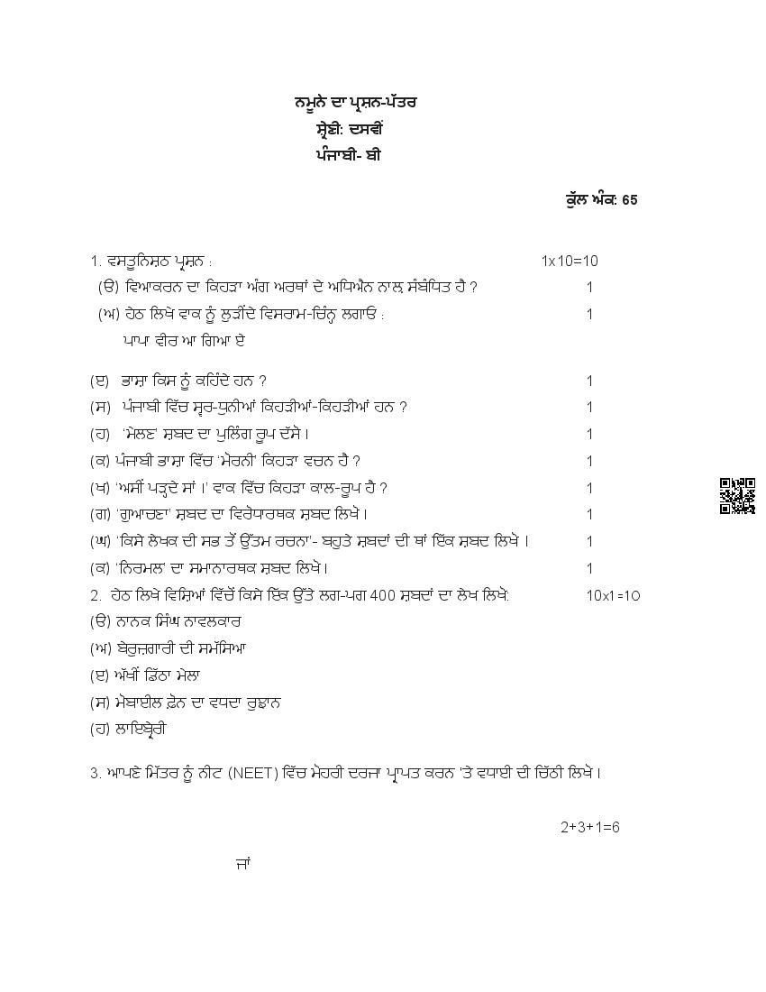 The Punjab Board Class 10 Model Paper for Punjabi B is the sample paper with specimen questions from latest PSEB syllabus. Moreover the exam pattern in Punjabi B sample paper is same as actual board exam. Therefore the Punjabi B model question paper helps you prepare for 10th class Punjab board exams.
