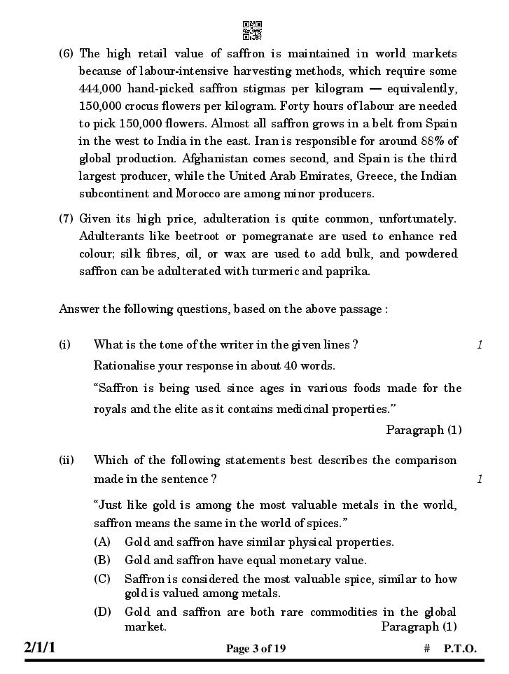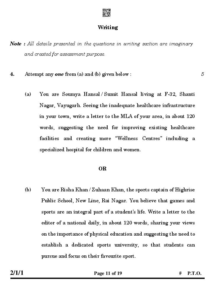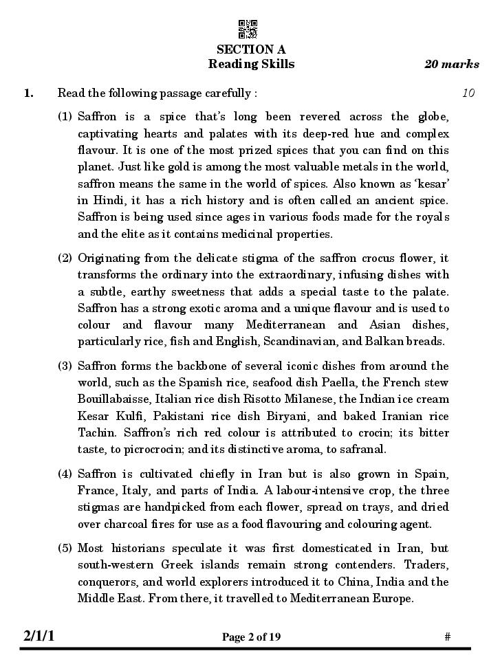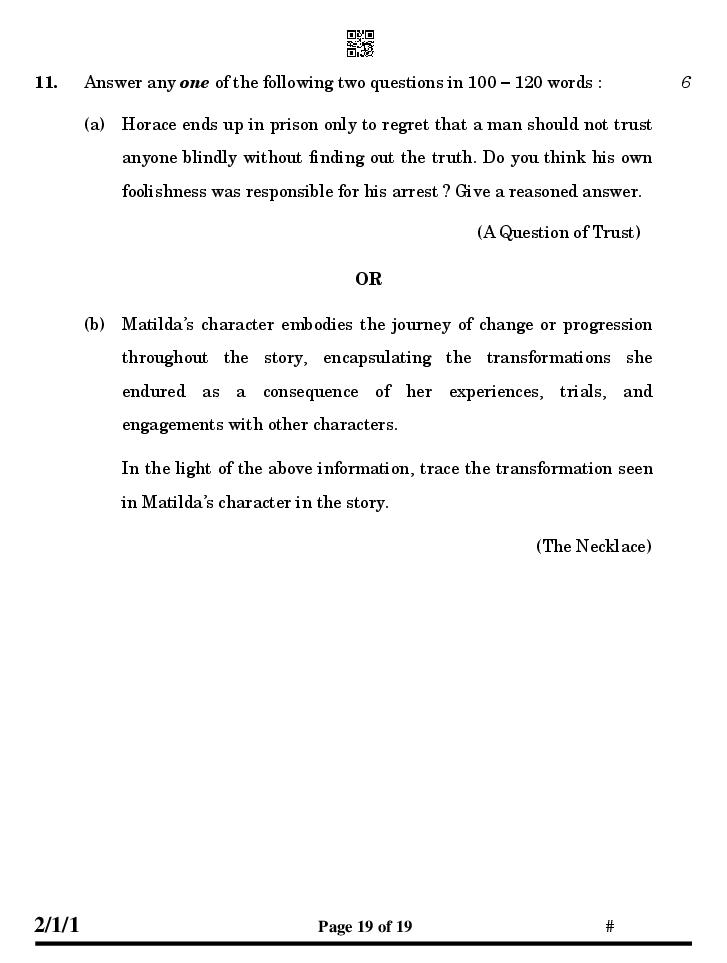 The CBSE question paper for class 10 English of the exam held in past years is as follows.