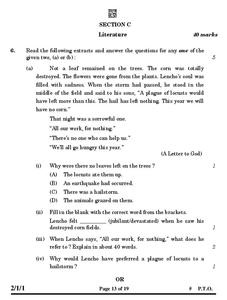CBSE Class 10 English Question Paper 2026 is now available for download on aglasem.com! You can easily access the CBSE 10th English Previous Year Question Paper PDF from this page to enhance your exam preparation. This document includes all the questions from previous English tests conducted for standard 10 students, making it an excellent study resource. Additionally, it complements the CBSE class 10 English Sample Paper for all students. After utilizing the English paper, feel free to get more resources, including the CBSE Class 10 Question Paper for other subjects as well!