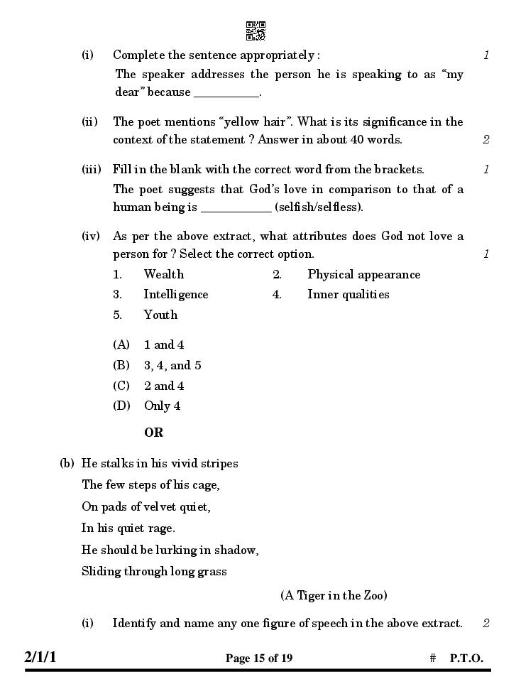 CBSE Class 10 English Question Paper 2026