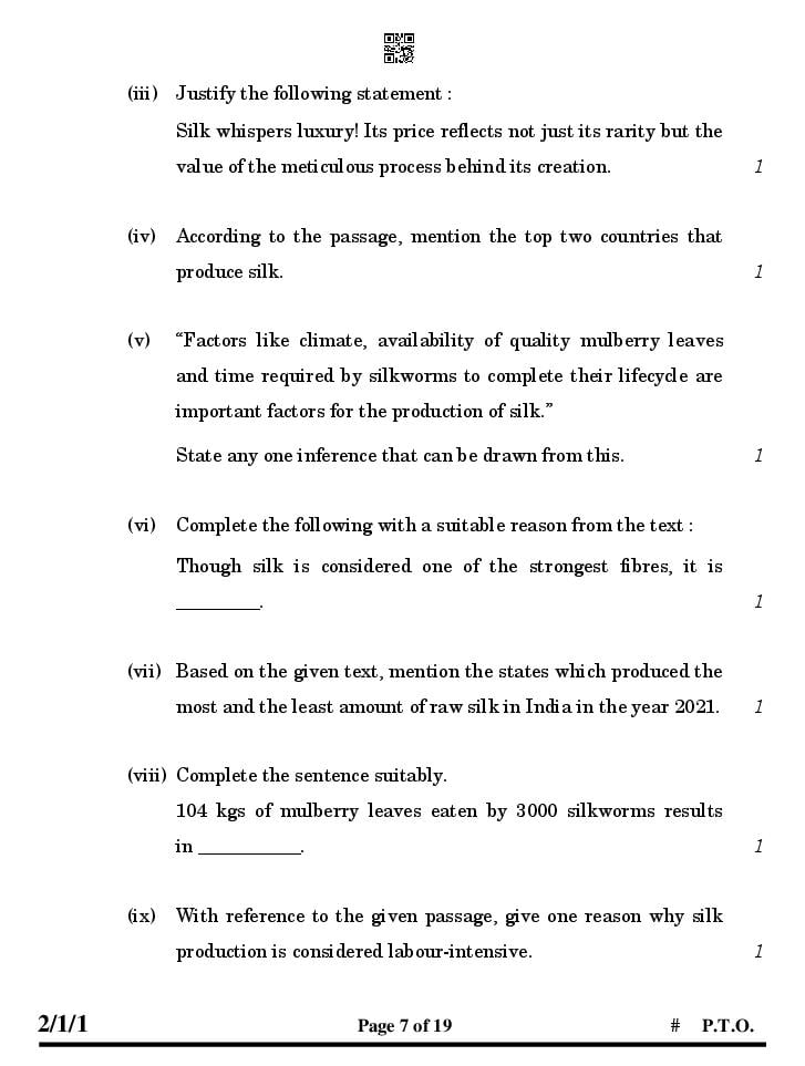 - CBSE Class 7 Question Paper