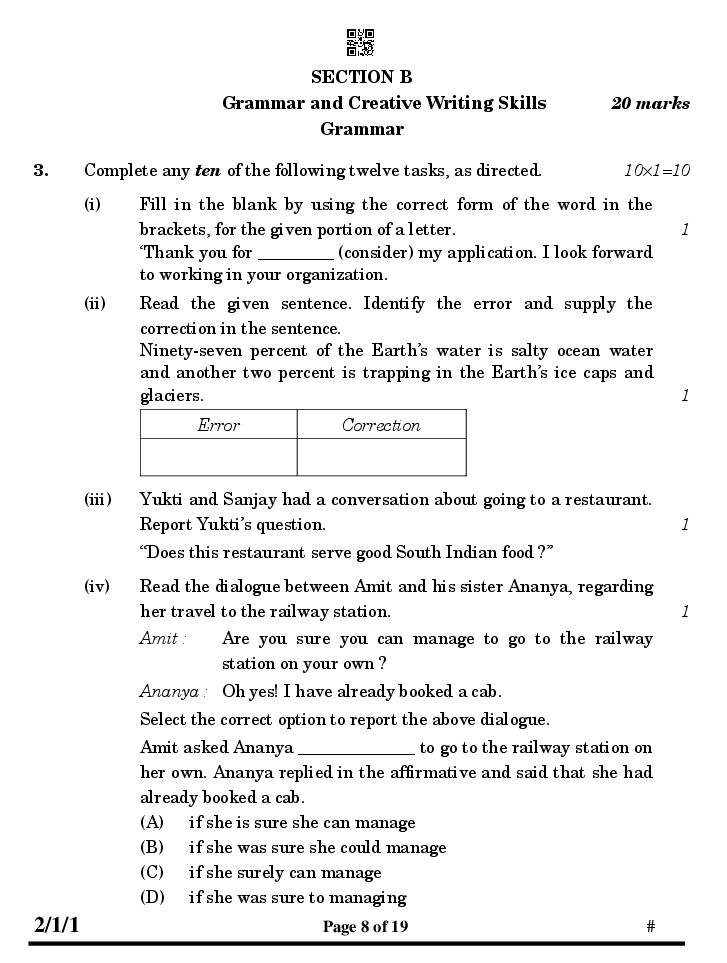 - CBSE Class 8 Question Paper