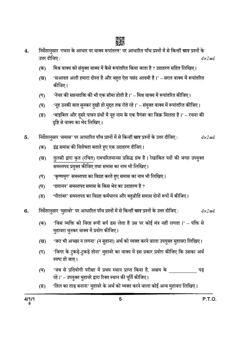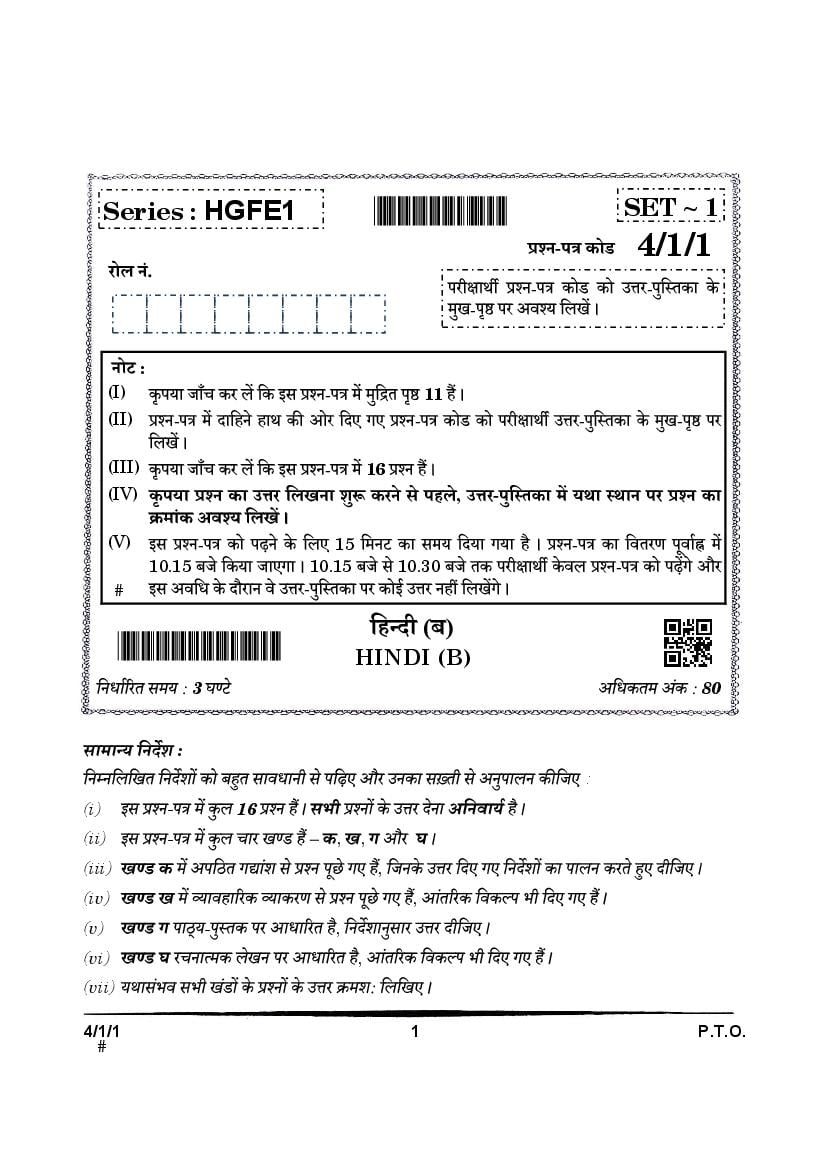 The CBSE question paper for class 10 Hindi B of the exam held in past years is as follows.