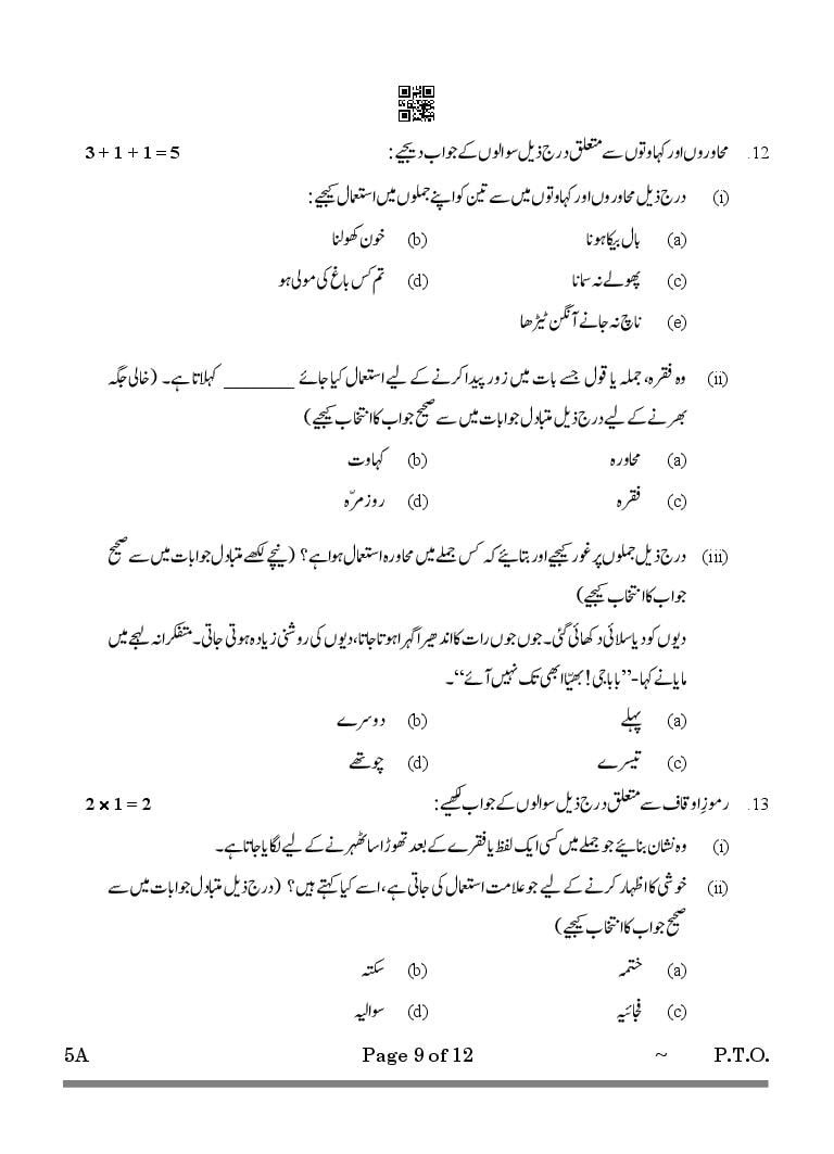 | 10 Exam | Urdu A Question Paper | Urdu A Answer Key |