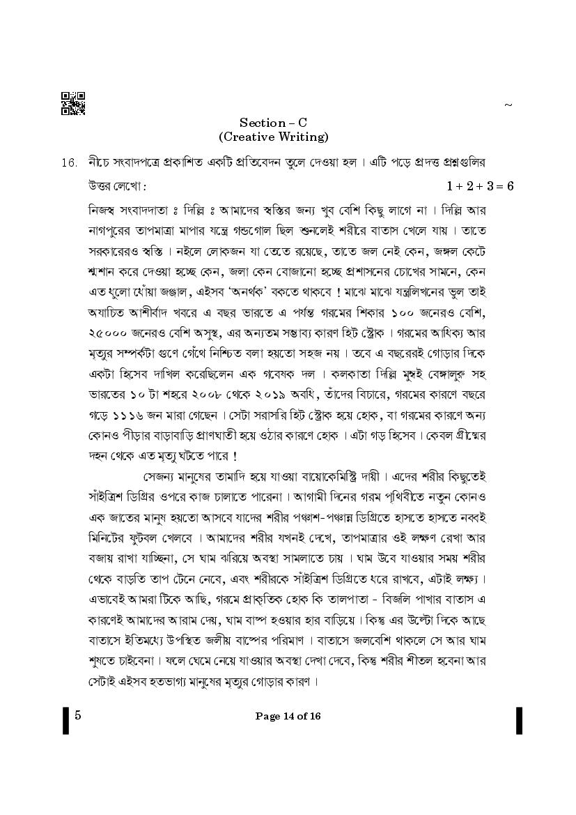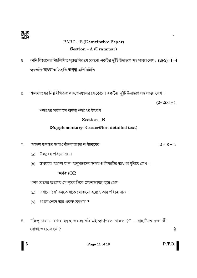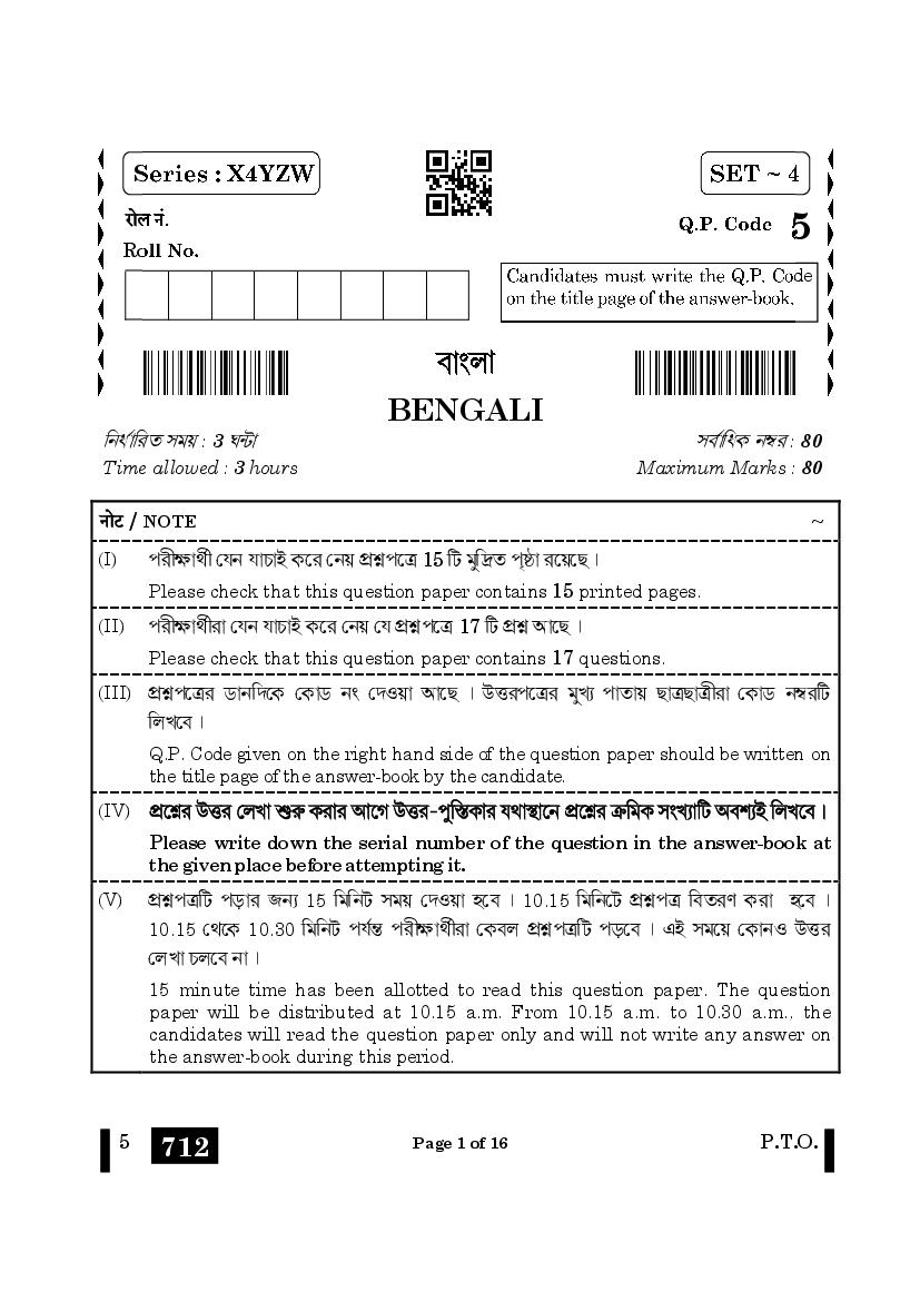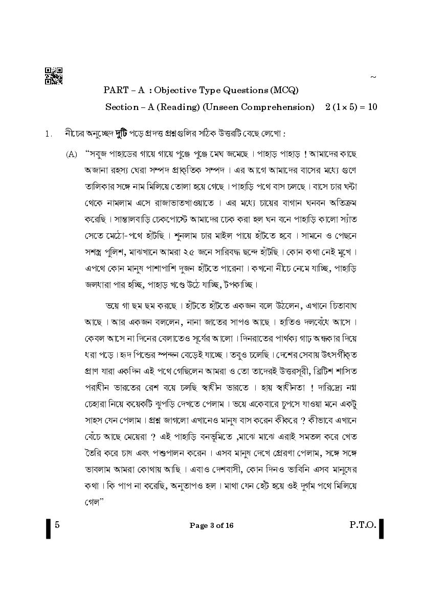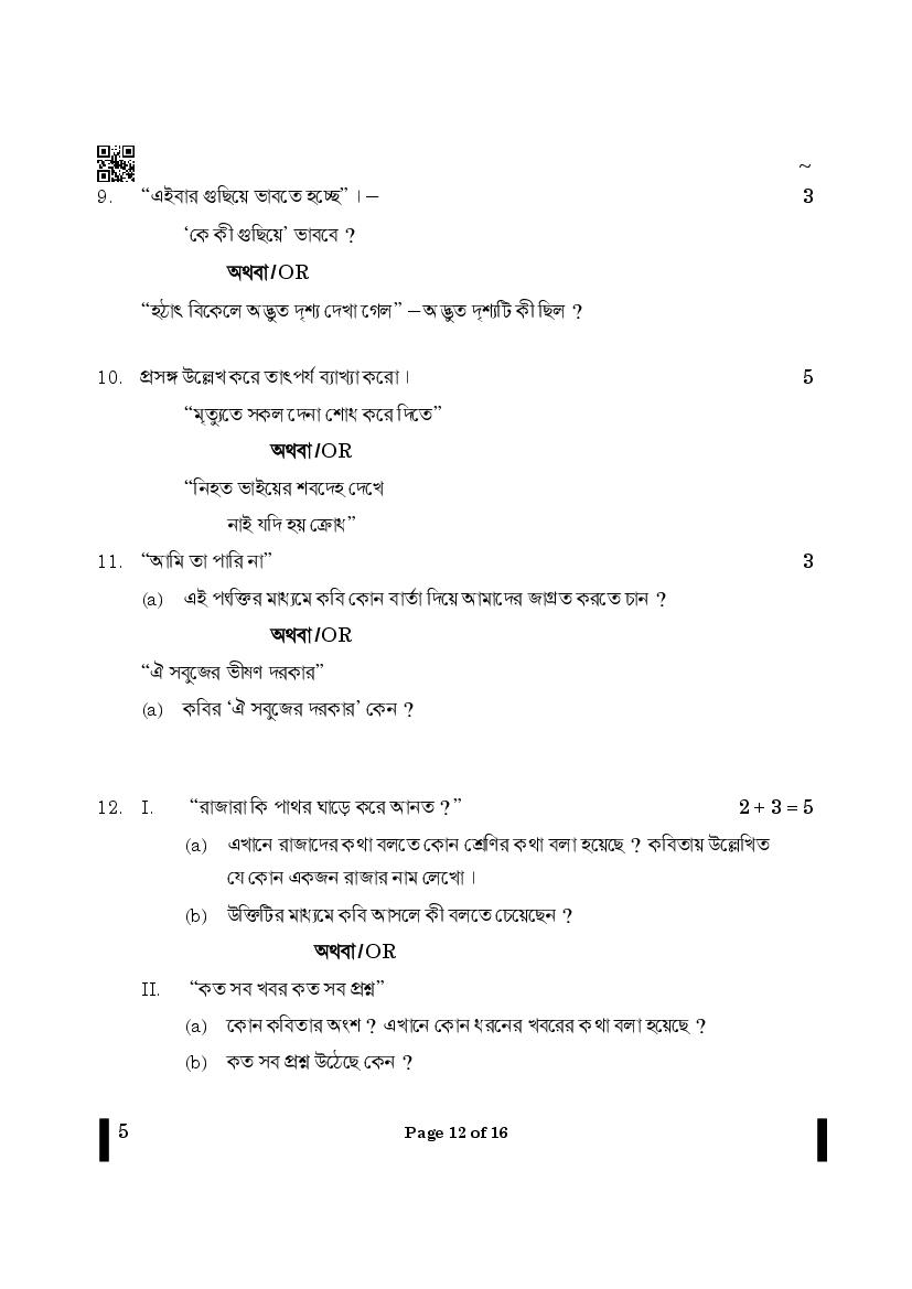 The CBSE question paper for class 12 Bengali of the exam held in past years is as follows.